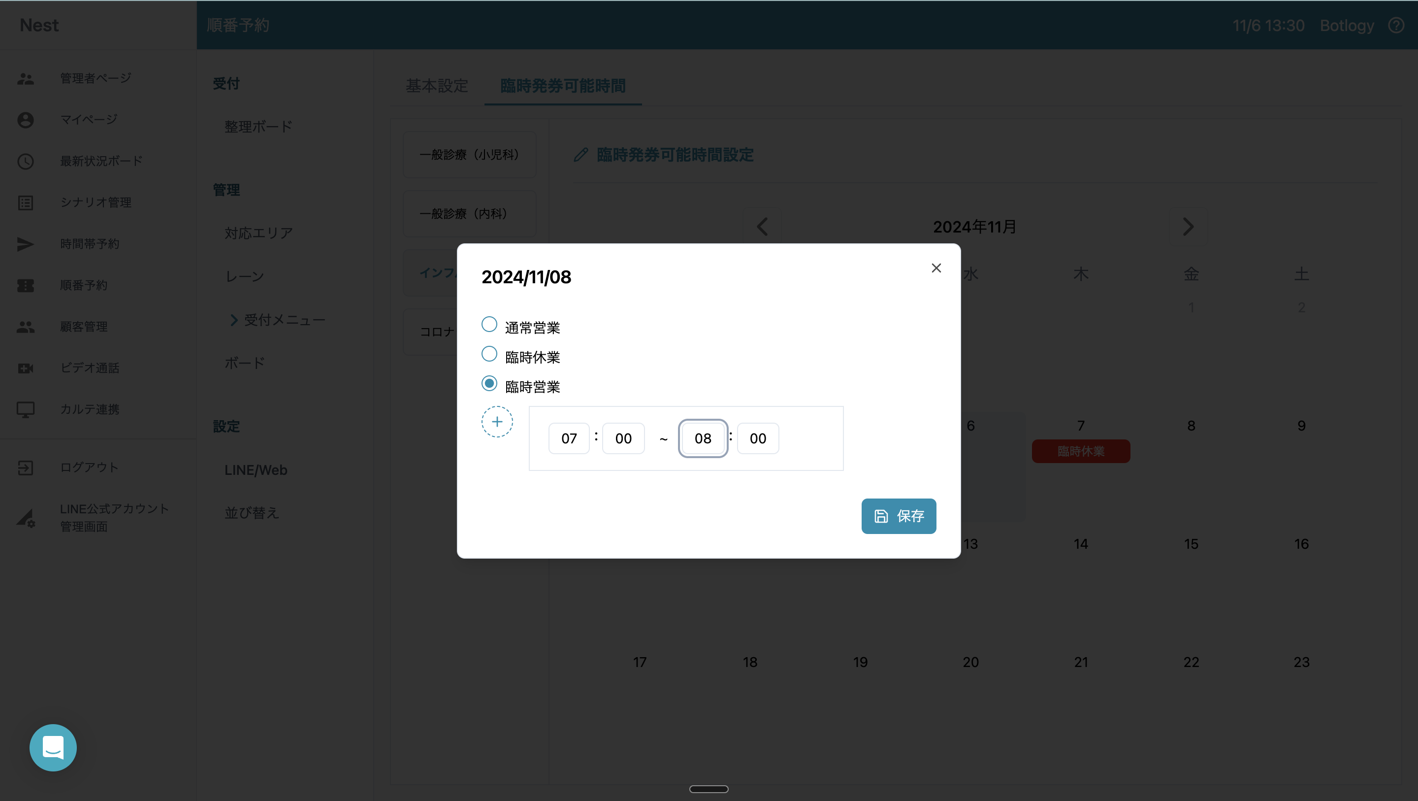 順番予約 | 臨時営業(・休業)時間を決める