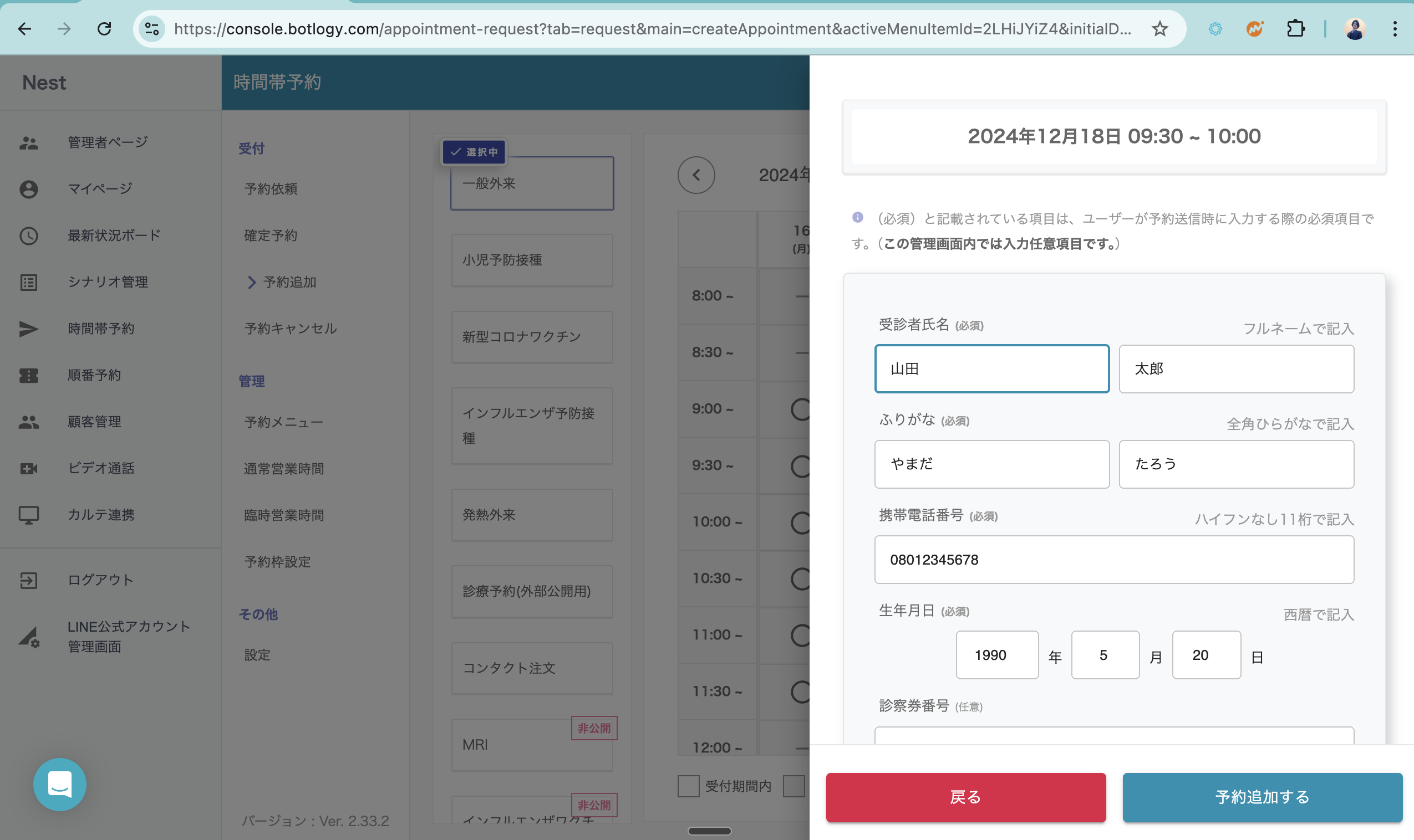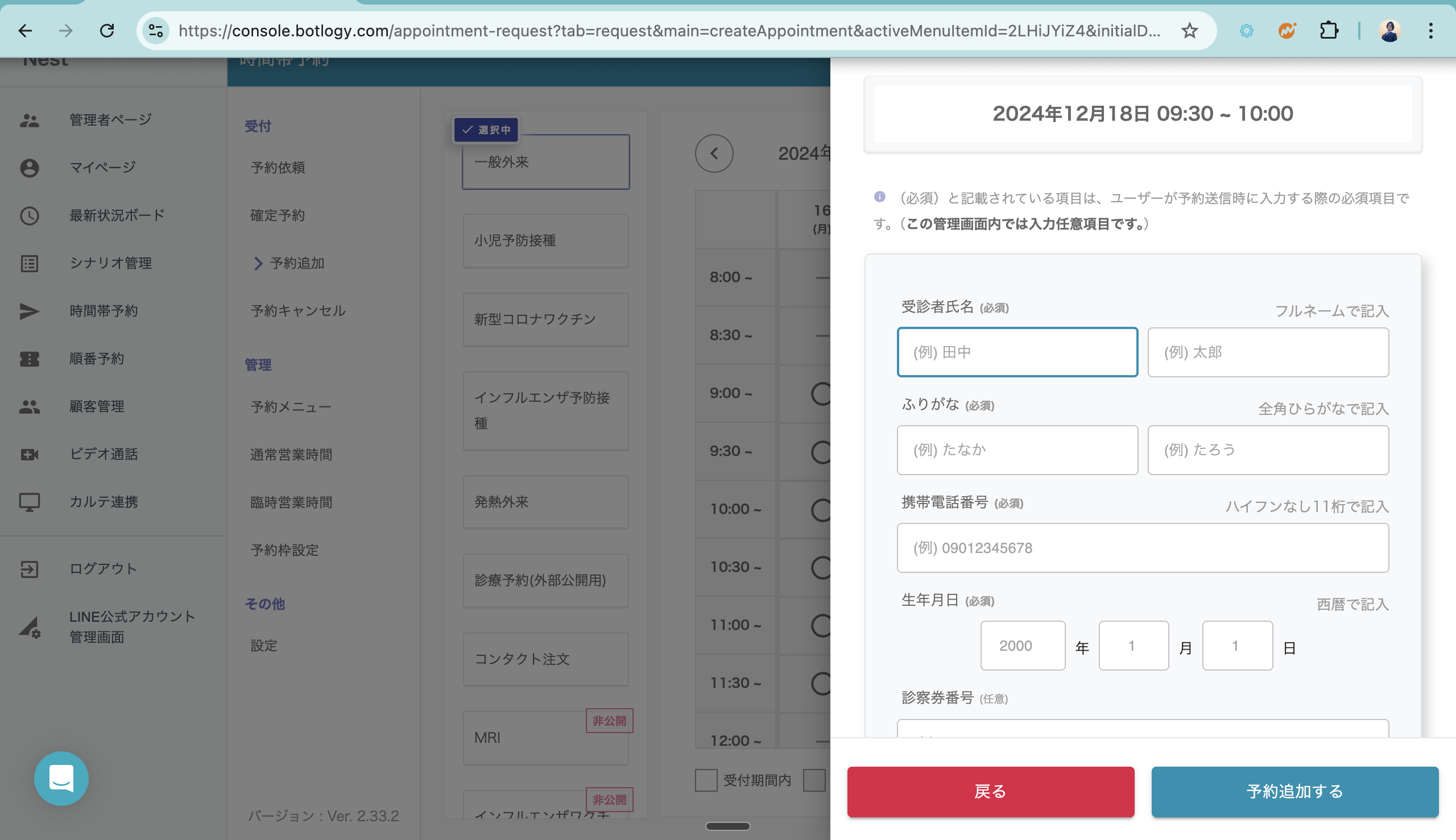 2. 予約追加のフォームが表示されます。