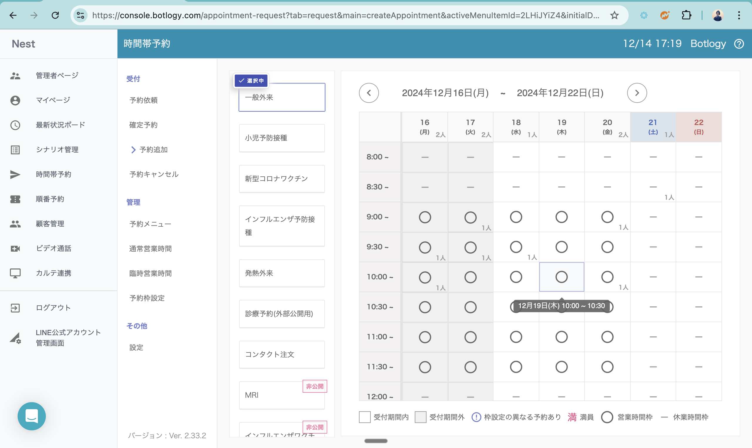 1. 予約追加より、予約を追加したい時間帯を選択します。
