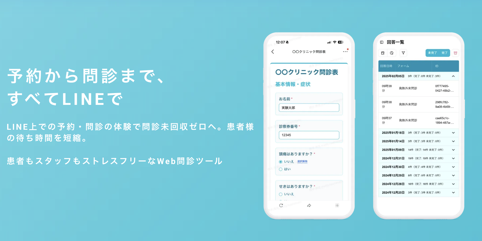 Nest問診はオールインワンLINE診療支援システム「Nest診療」の機能の一つで、医療機関は患者さま向けの問診フォームの作成、回答の確認が、患者さまはLINEをはじめとして、Webからかんたんに問診の記入をすることができます。