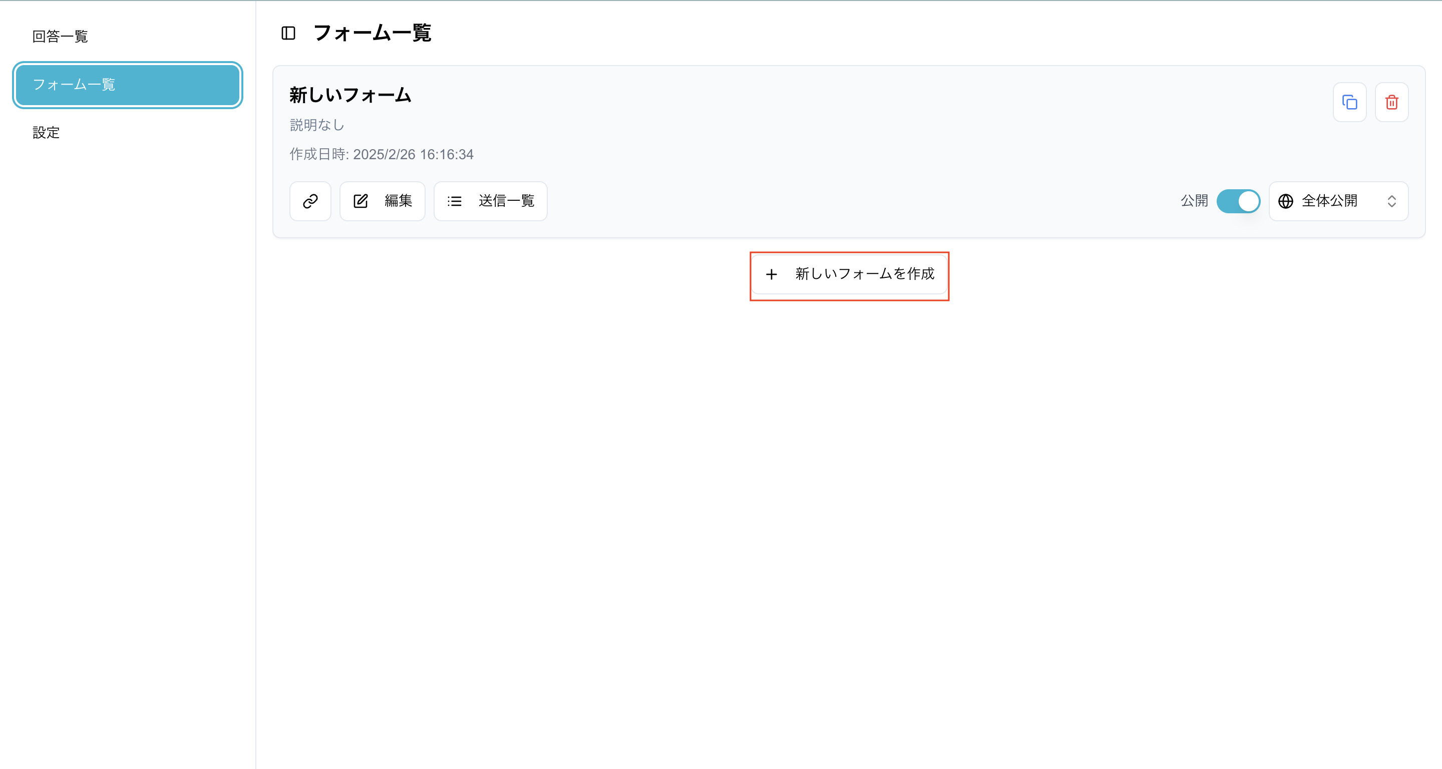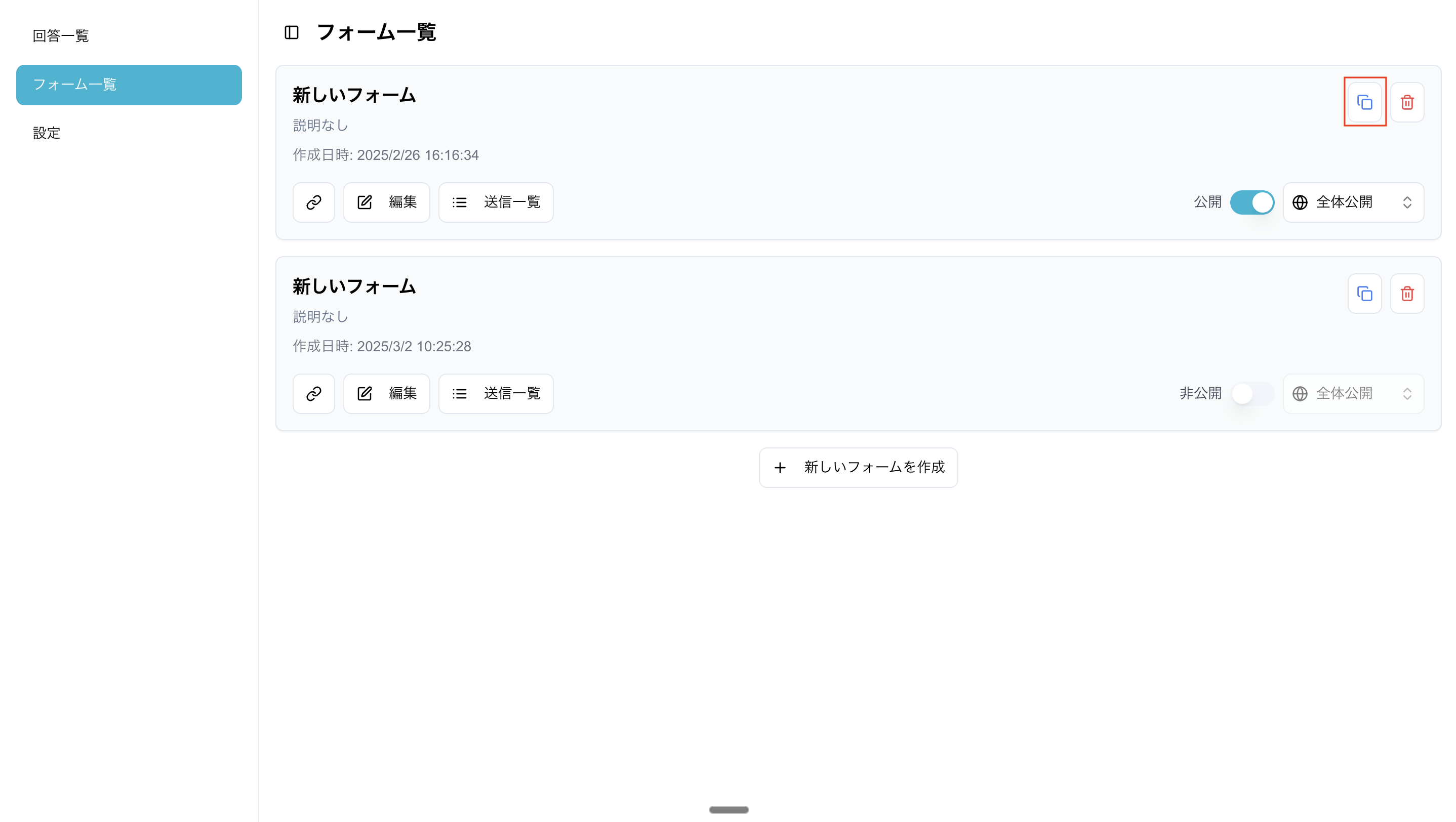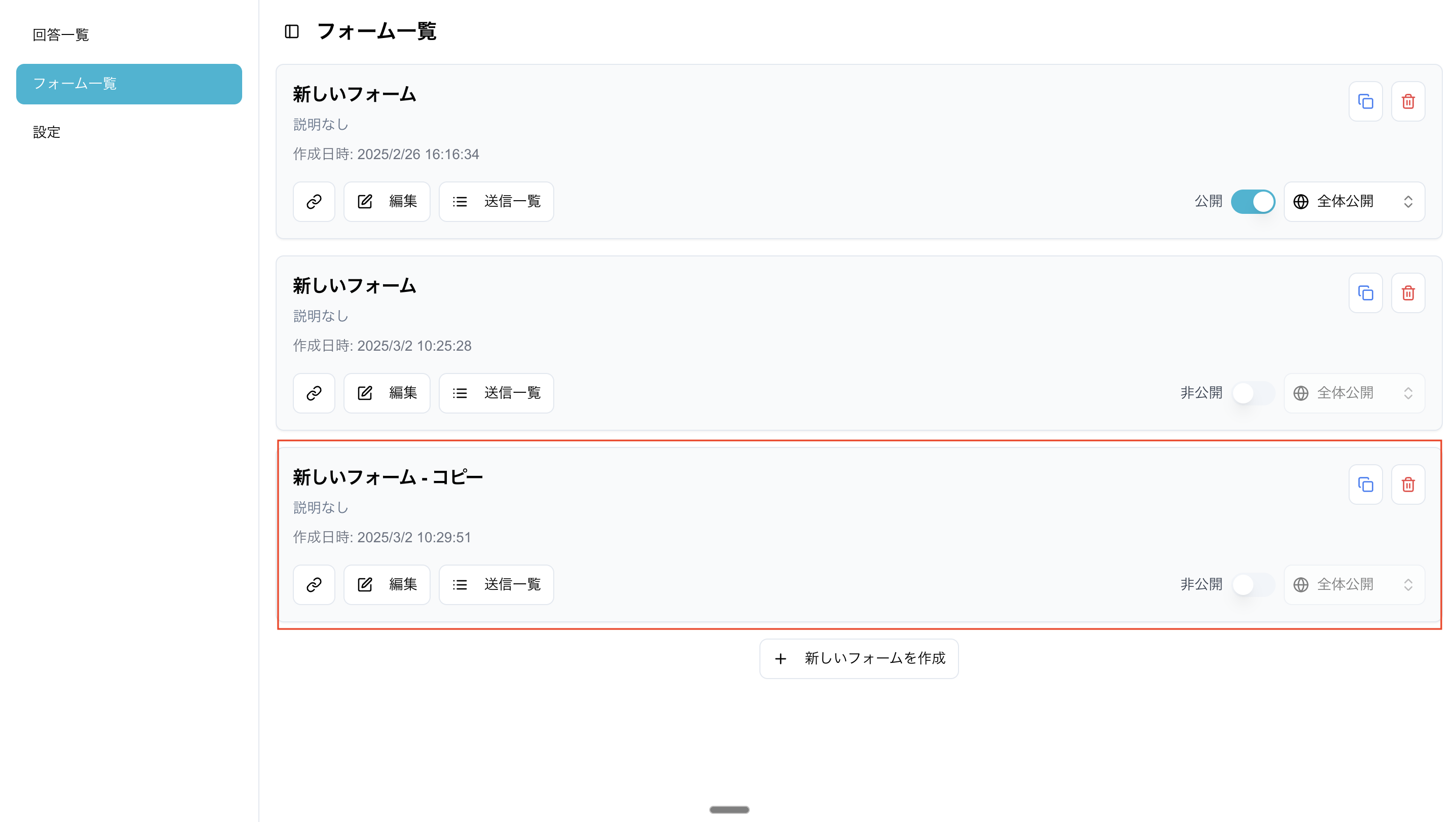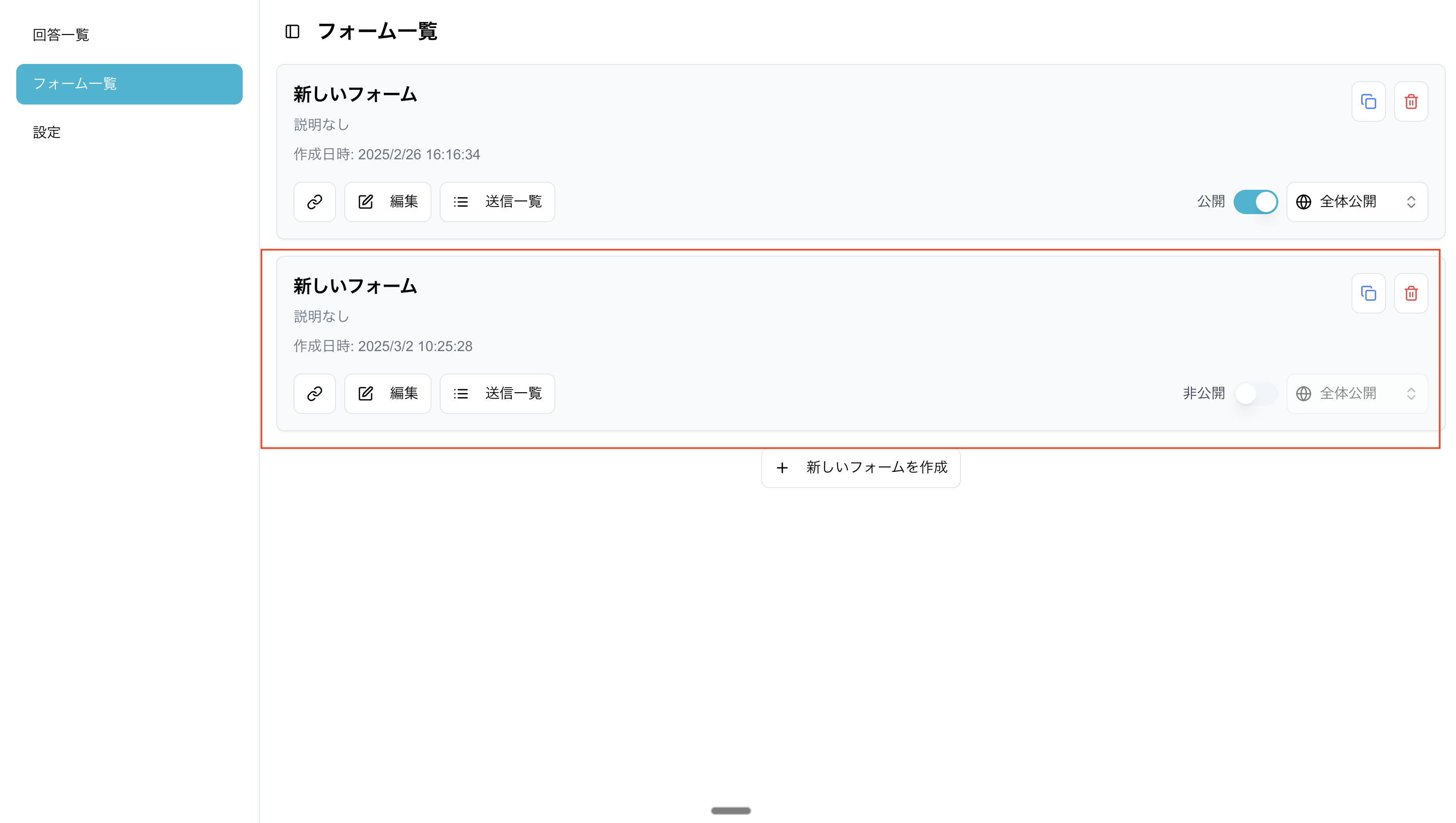 3. フォーム一覧に新規作成したフォームが追加されます。