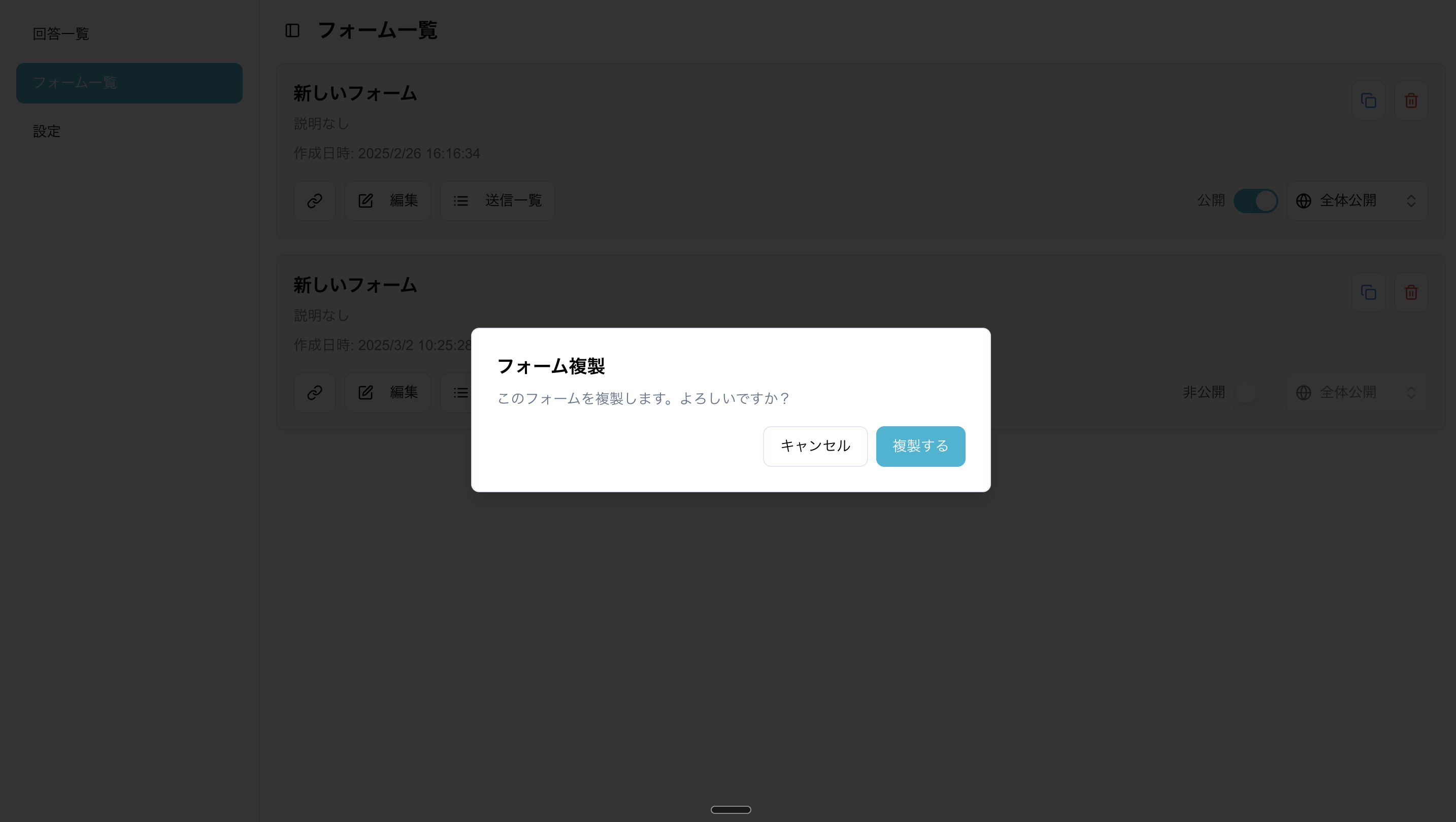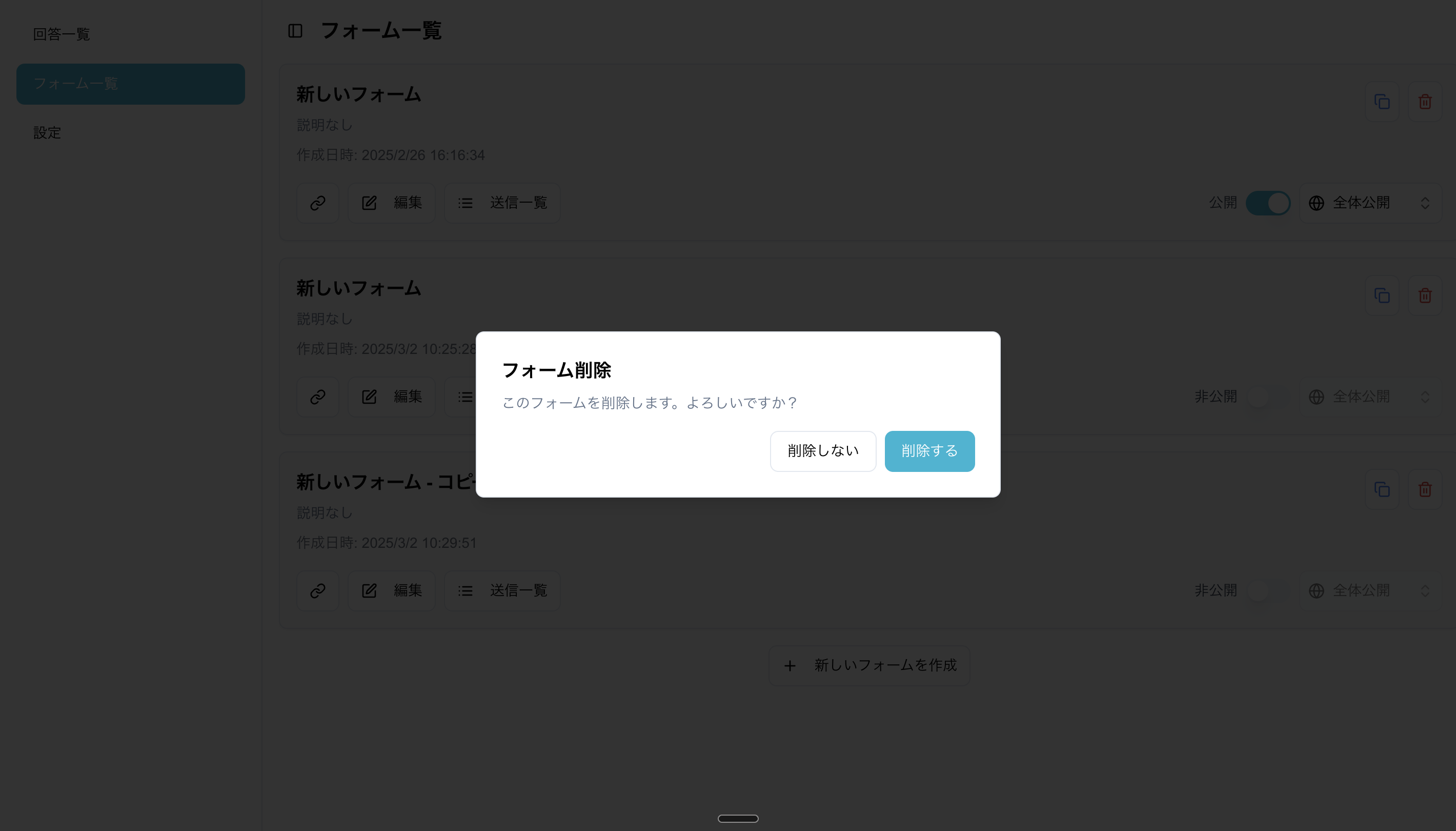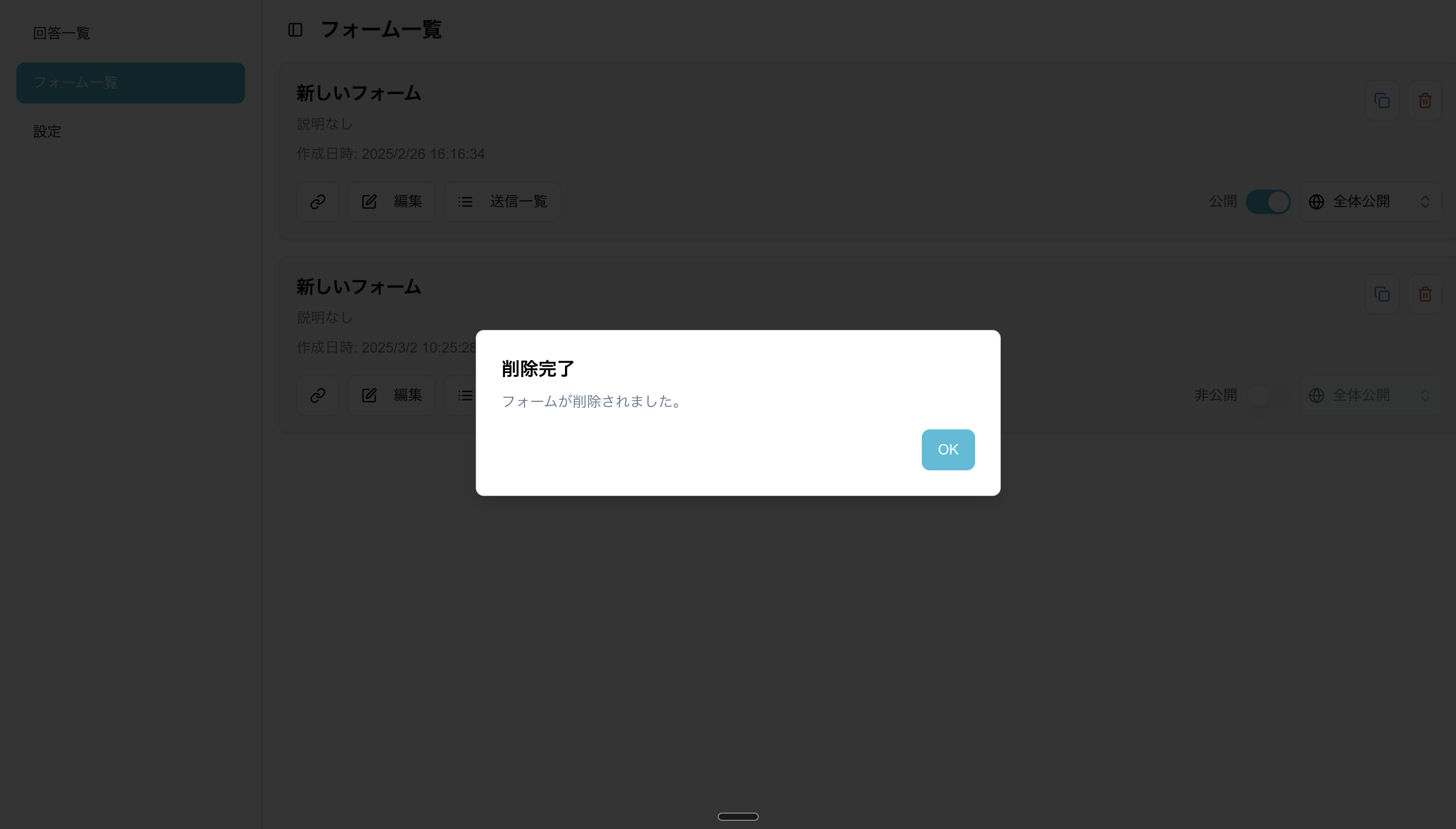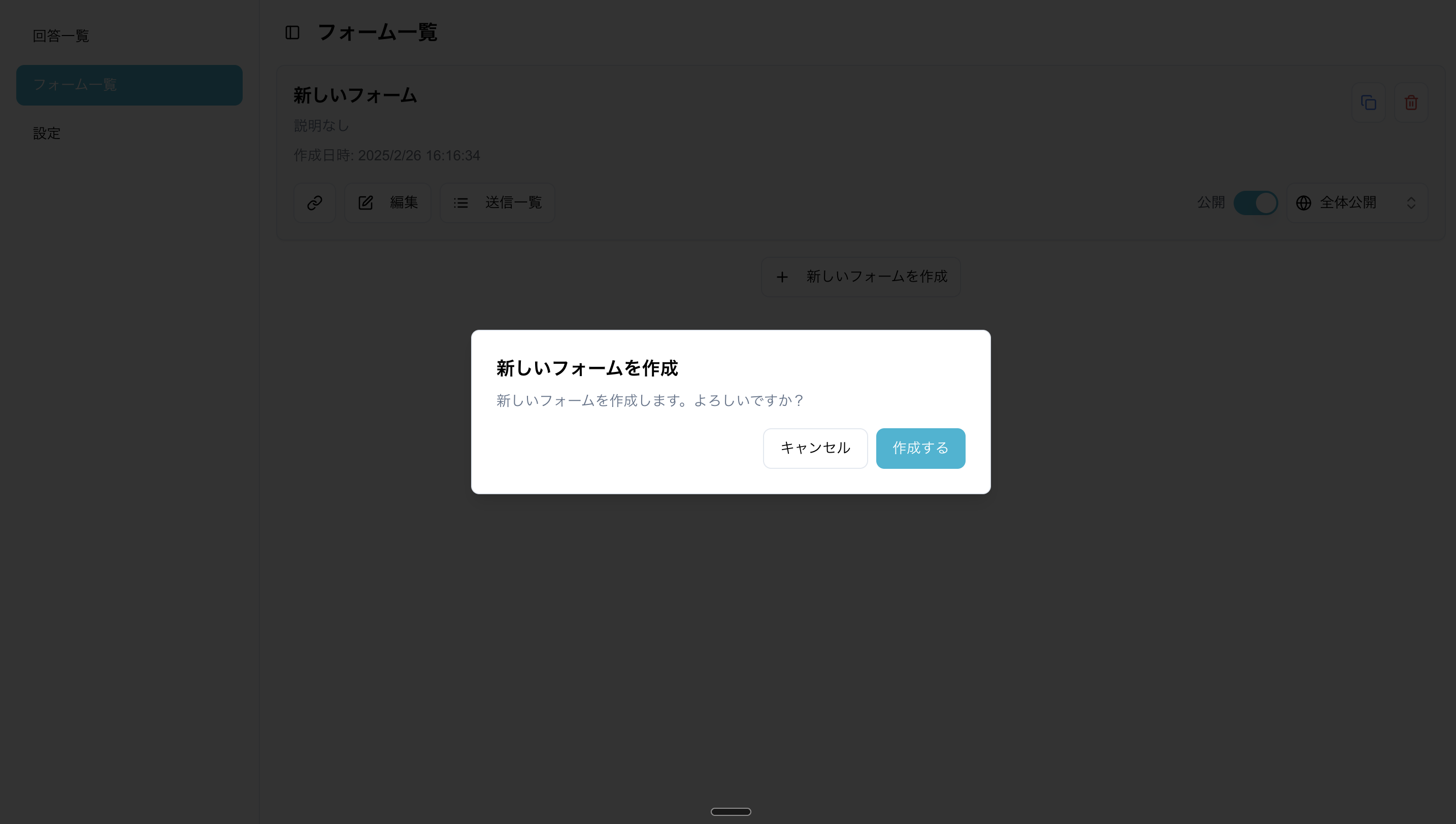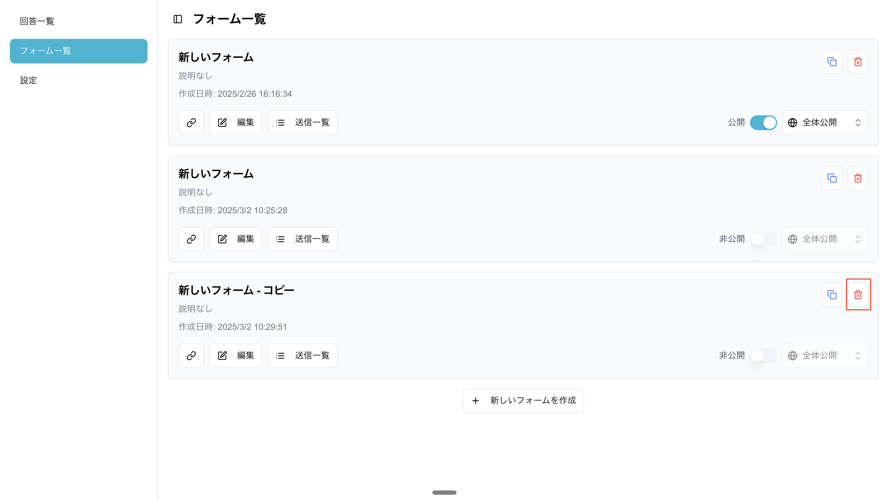 3. フォーム一覧に新規作成したフォームが追加されます。