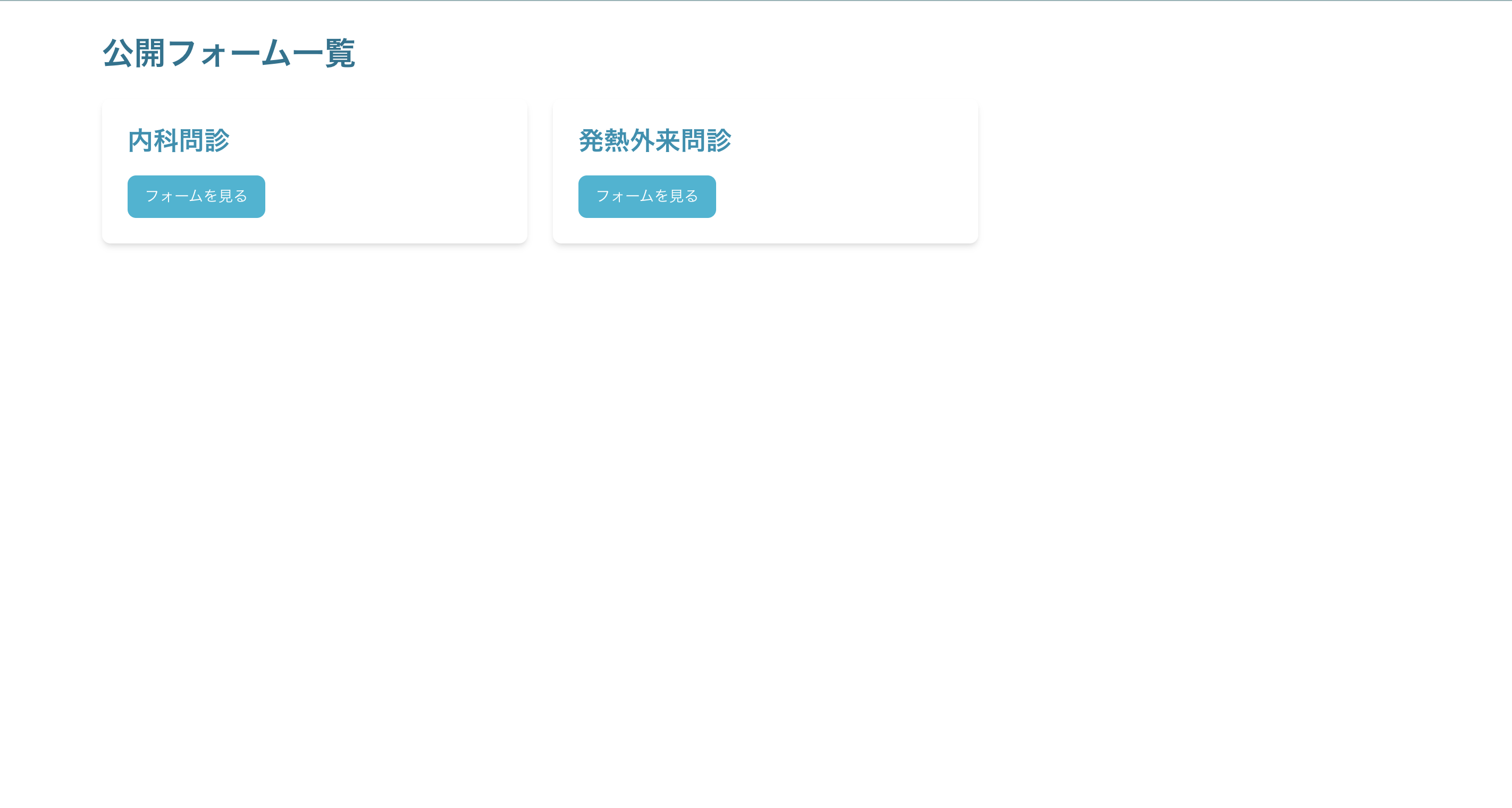 患者側のフォーム一覧画面では、全体公開になっているフォームが一覧で表示されます。患者さまはこちらの画面から回答したいフォームを選び、回答することができます。