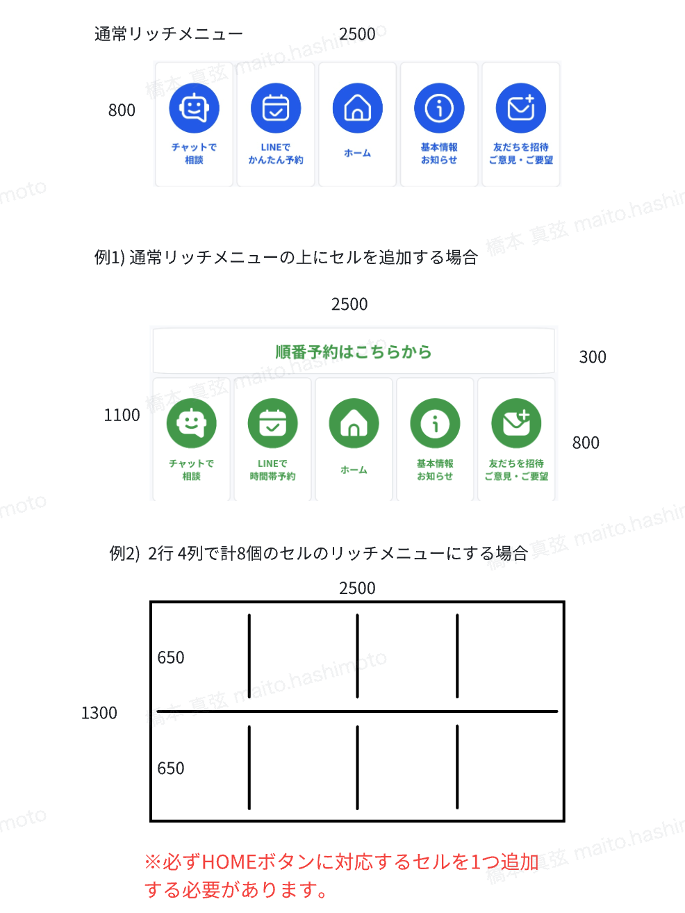 リッチメニューデザインをBotlogy社ではなく貴院で行う場合、下記のをご共有ください。