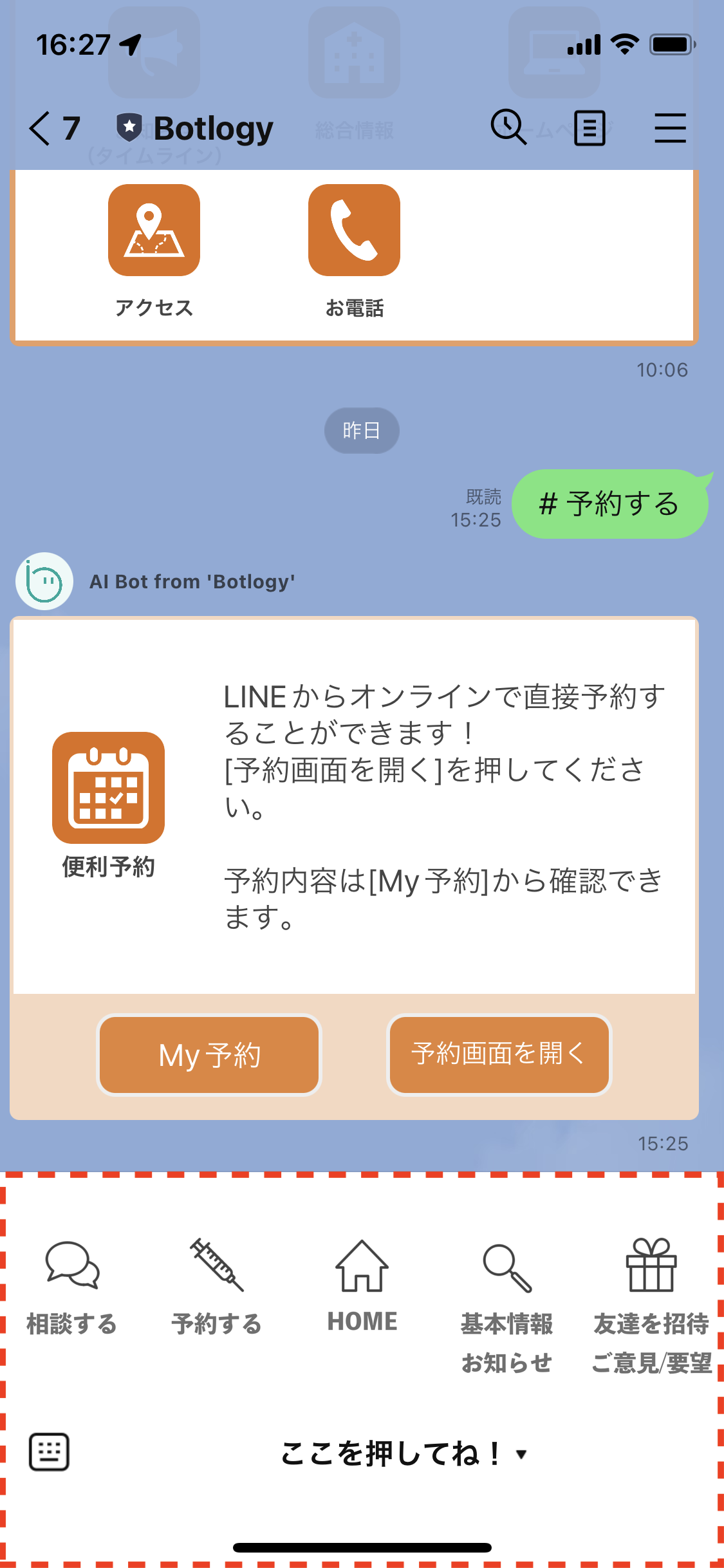 - 実際に運用されているクリニック様のカスタマイズされたリッチメニューです。ぜひご参考にしていただけますと幸いです。