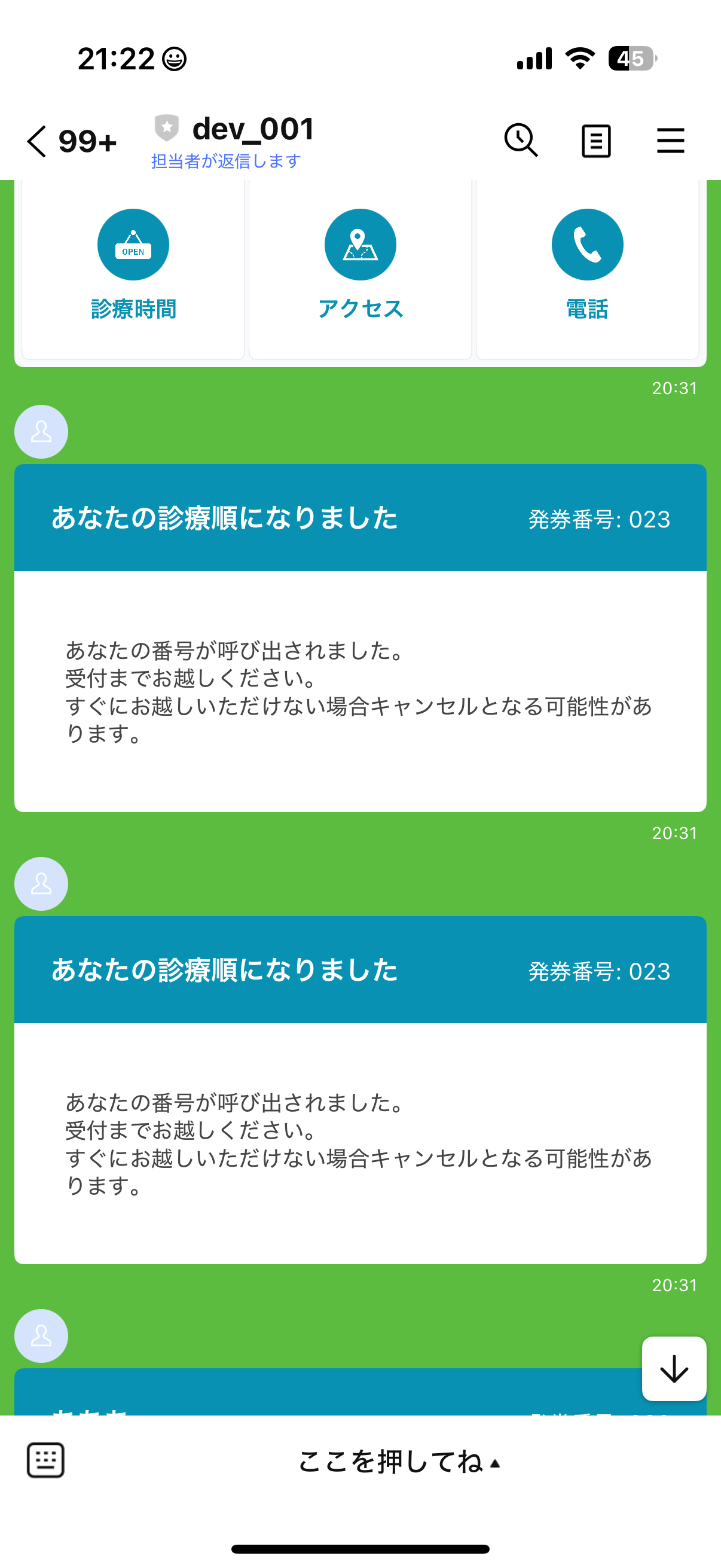 以下は呼び出し通知のイメージです。LINEで通知が届きます。
