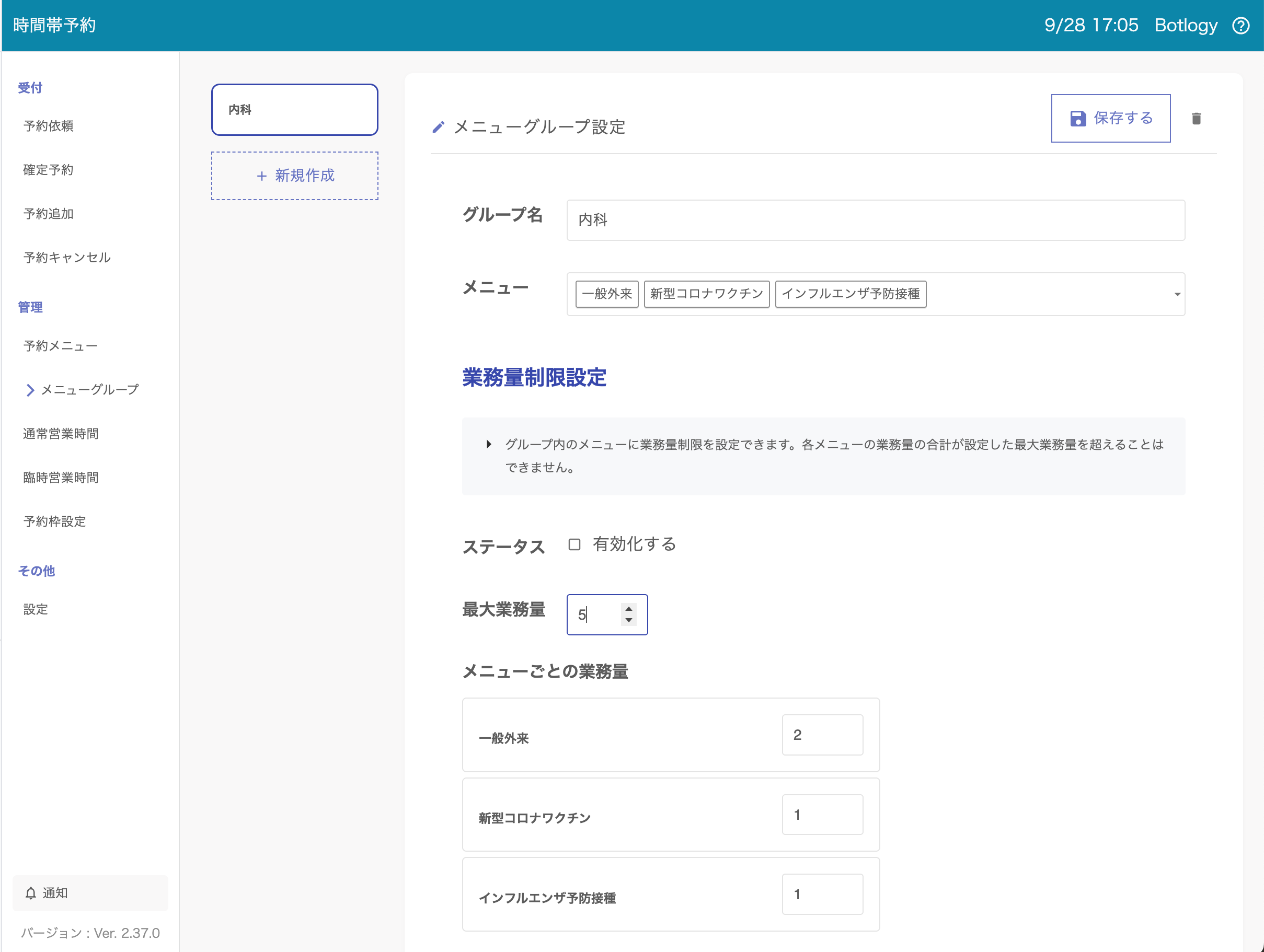 4. 最大業務量とメニューごとの業務量を設定します。