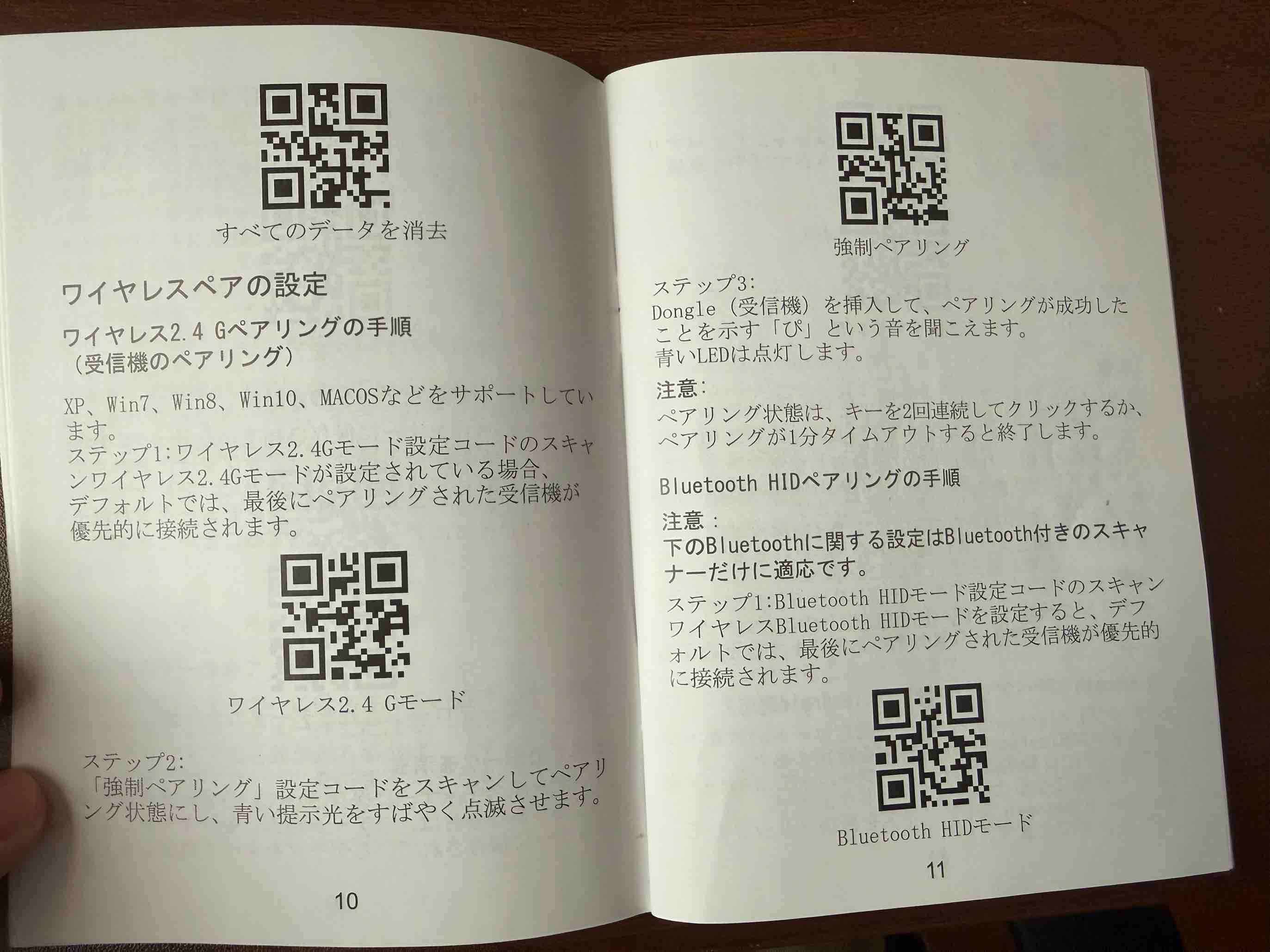 - ワイヤレス2.4Gモードをバーコードリーダーで読み込む