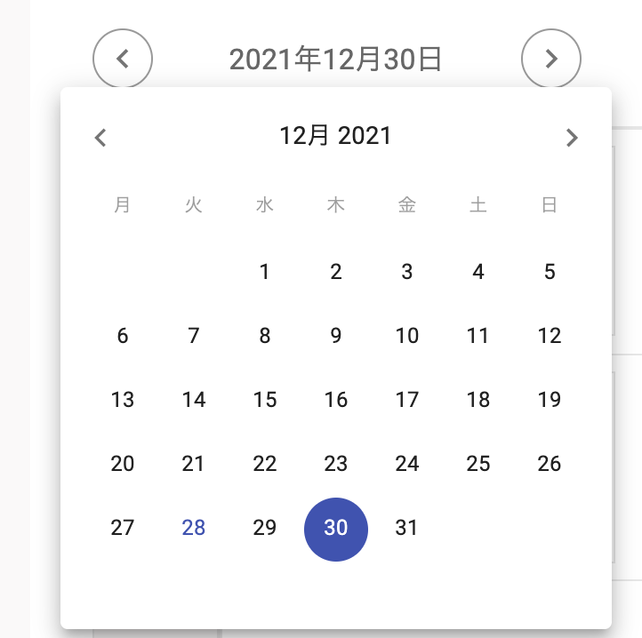 日付をクリックすることで、カレンダーが表示されます。