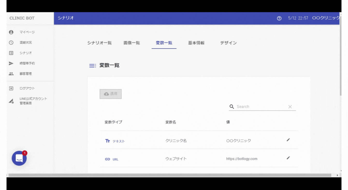 変数は、あらかじめ追加しておくことで、アクションや選択肢を作成する際にURLやテキストをテンプレートとして使いまわすことが可能になる機能です。