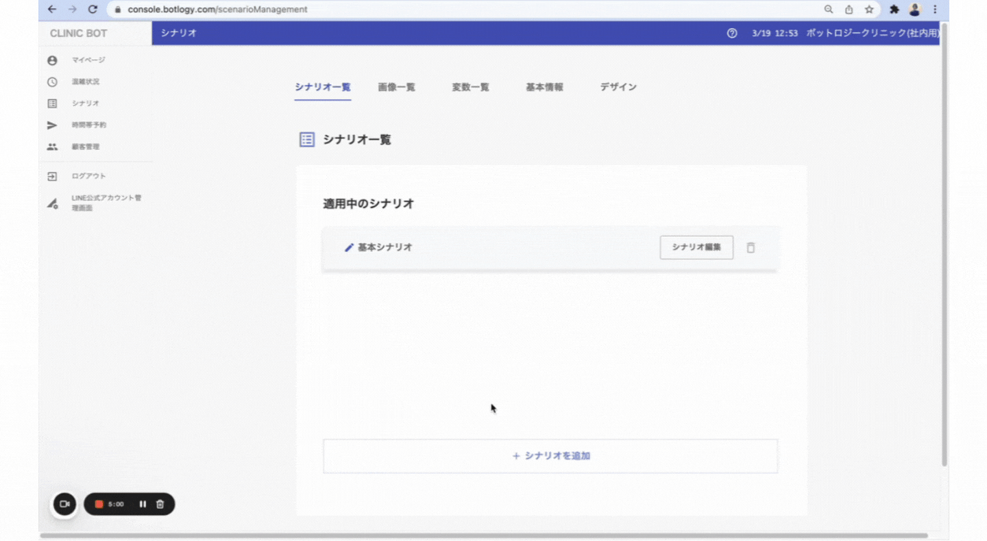 - シナリオ > シナリオ一覧から、編集したいシナリオを選択します。