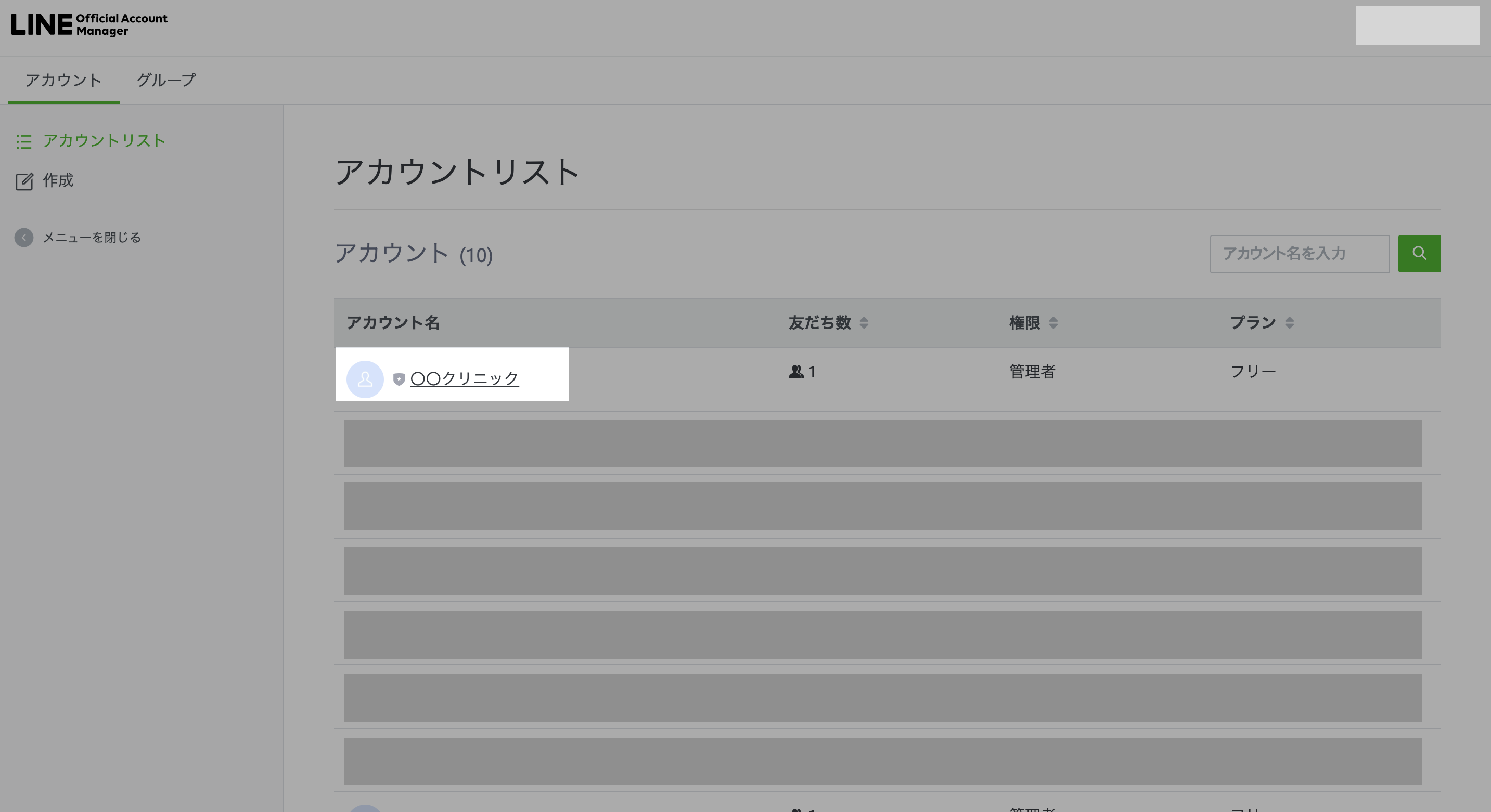 ③ログインが成功するとアカウントリスト画面が表示されます。