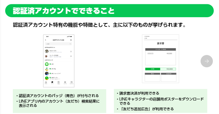 認証済アカウントはLINEの審査を通過したアカウントで、青色の認証バッジが付与されます。