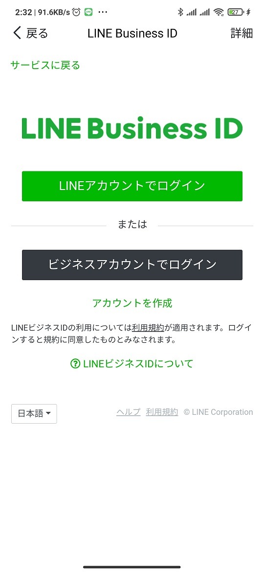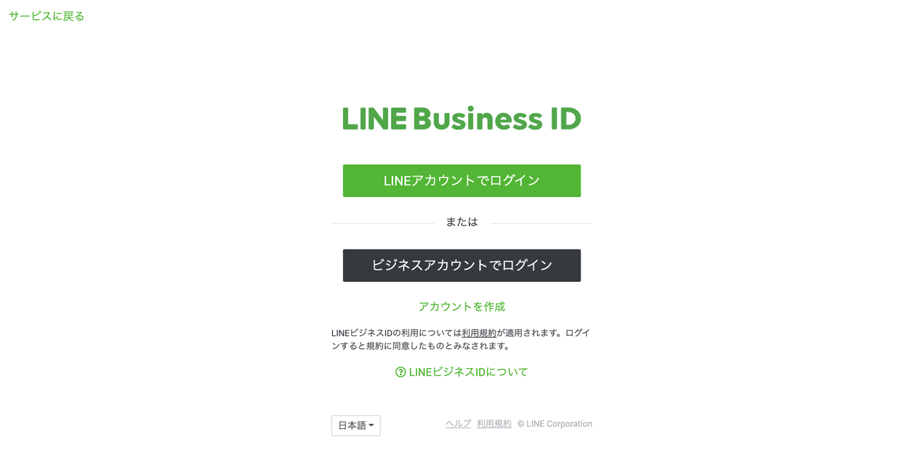 ②指示に従ってLINEログインで認証します。([LINEアカウントでログイン]を選択することで個人のLINEアカウントに公式アカウントの権限が付与されます。)
