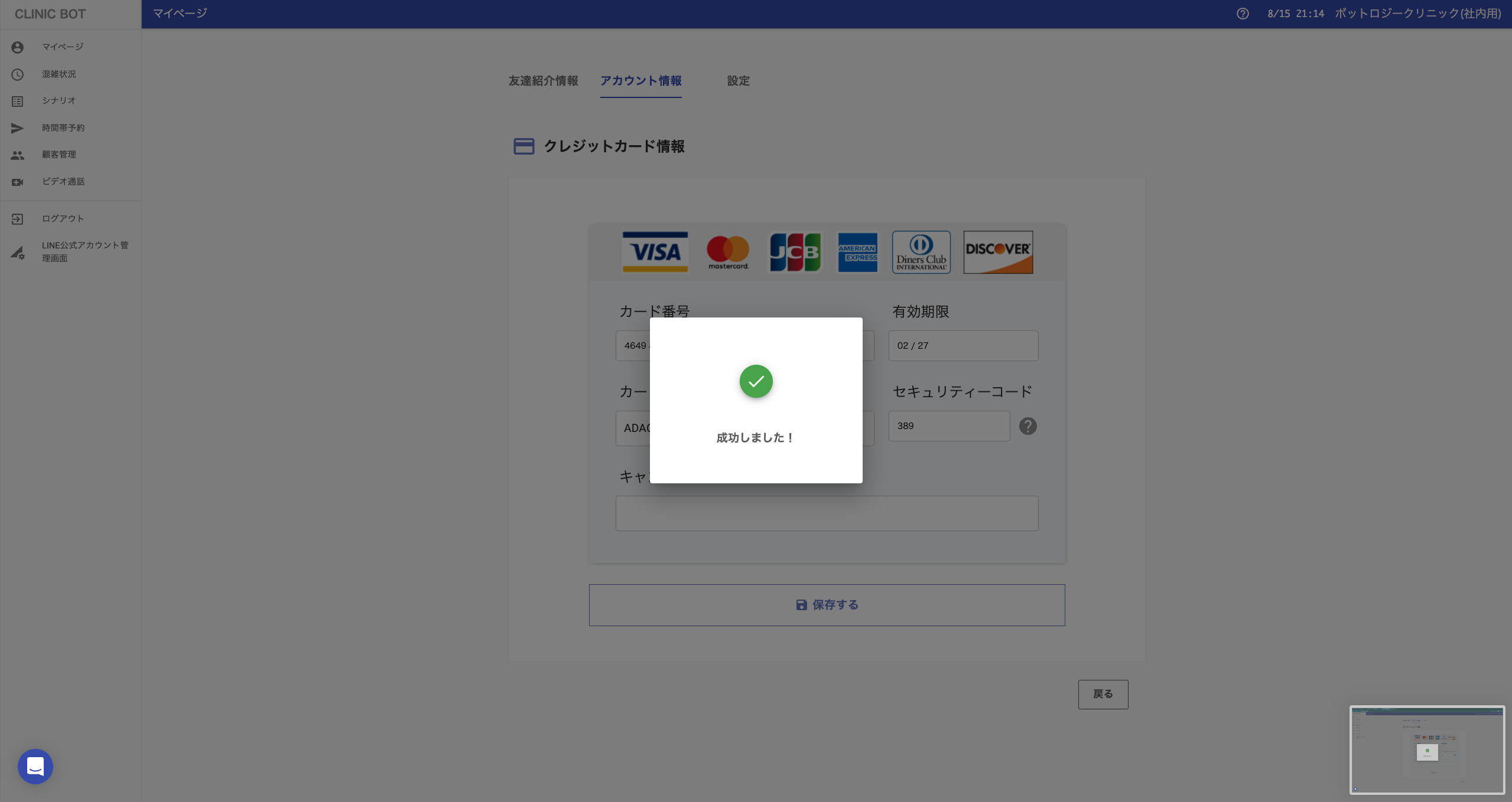 クレジットカード登録を行う(目安時間 : 1分)