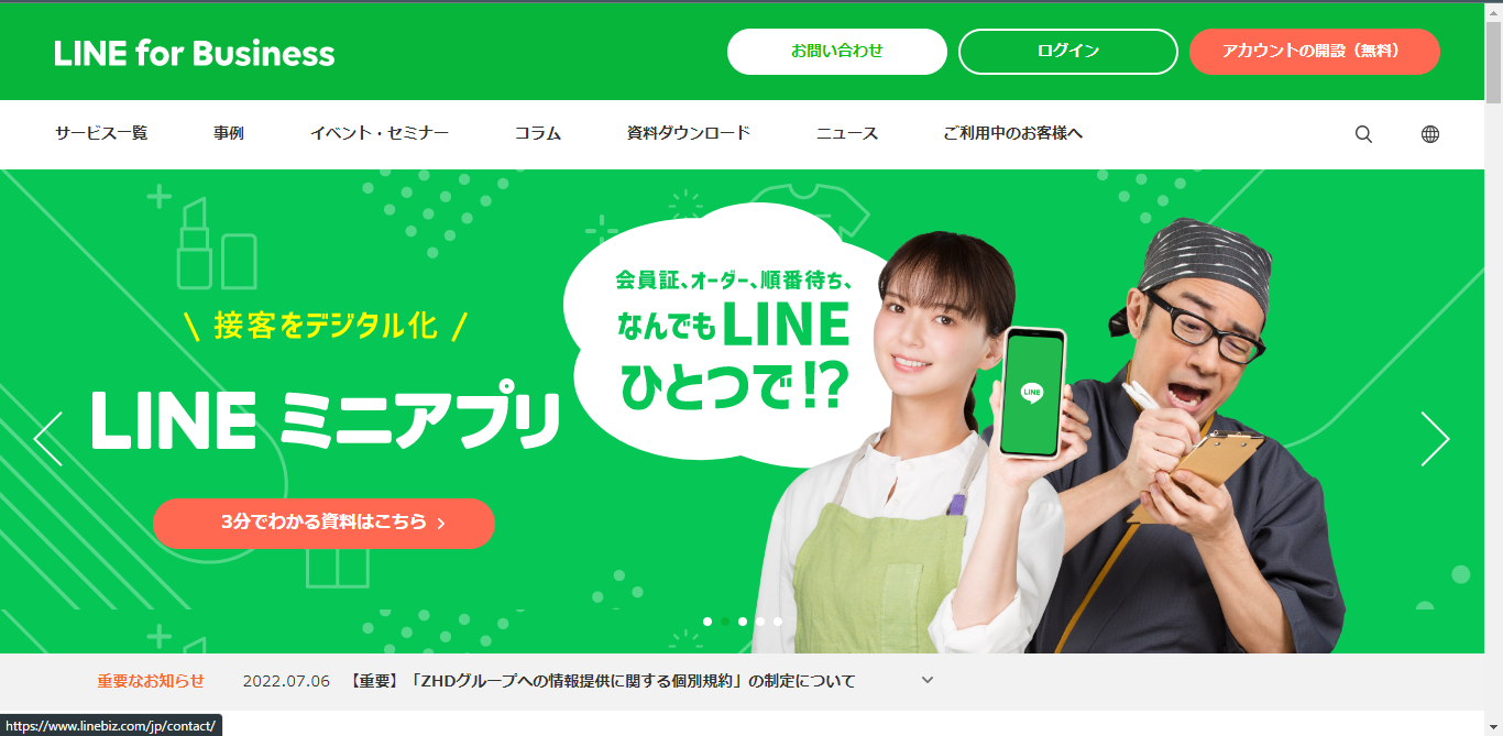 ①LINE for Businessにアクセスする