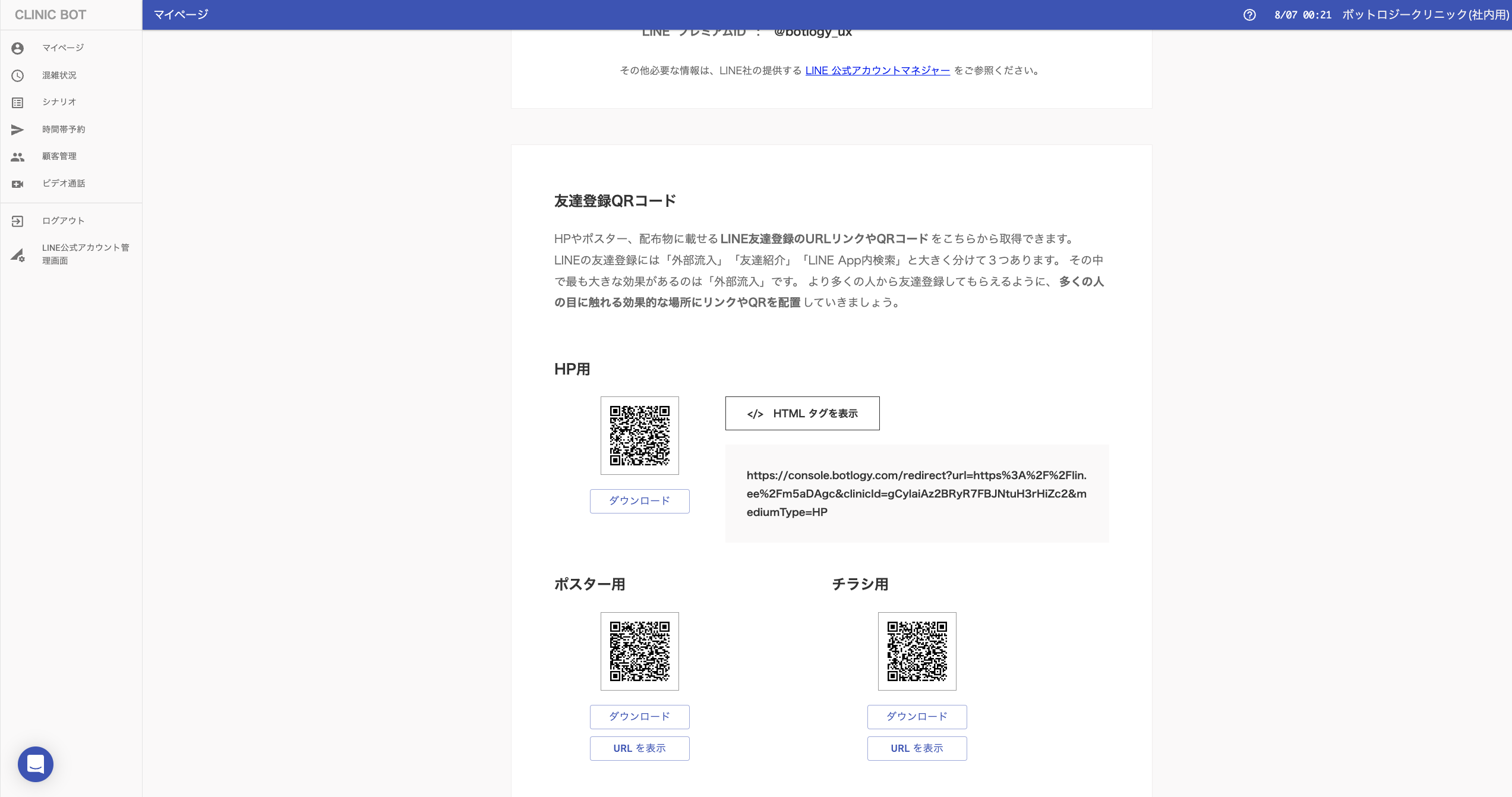 友達追加用LINE URLは、[マイページ]内にあります。お手持ちのスマートフォンから友達追加を行います。