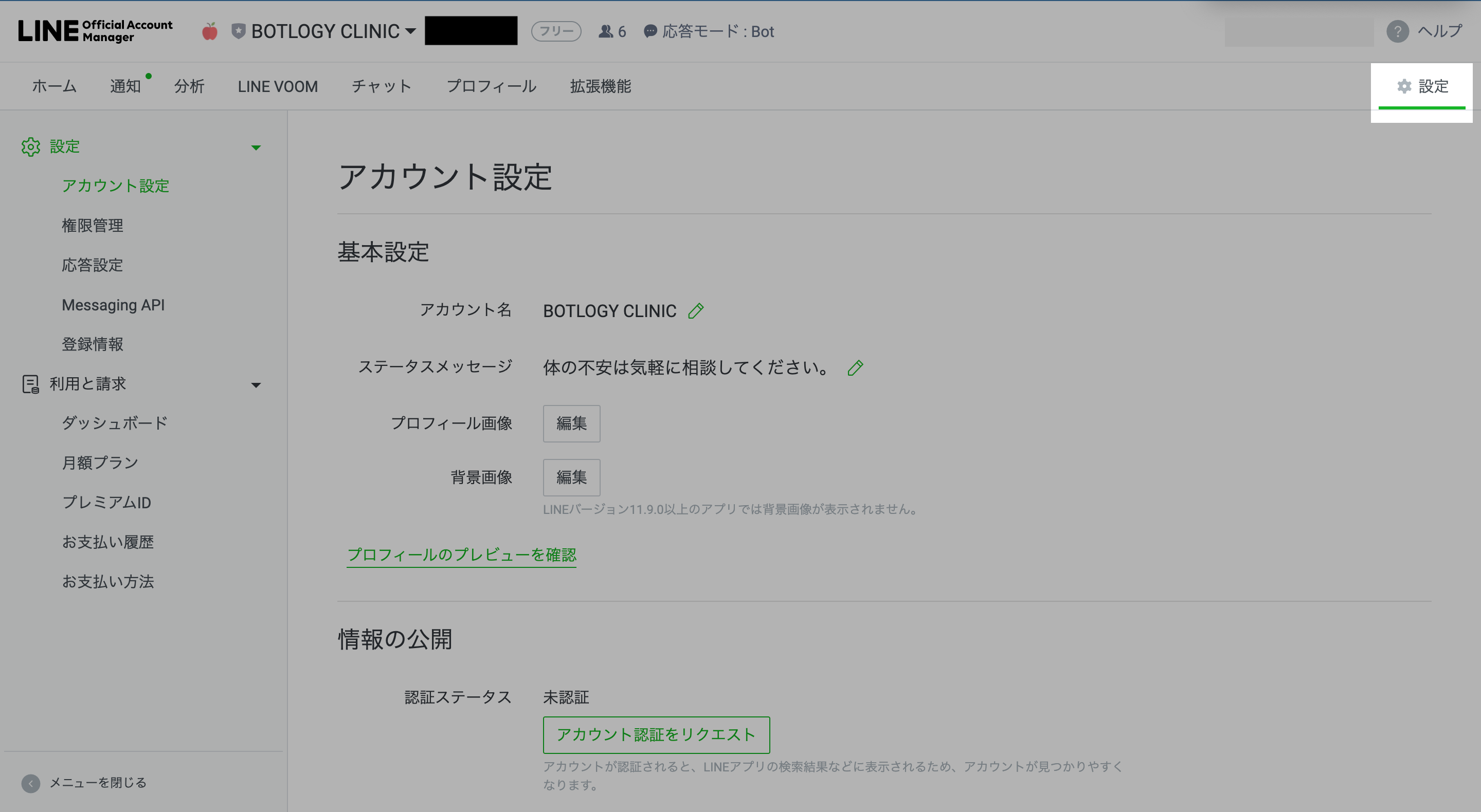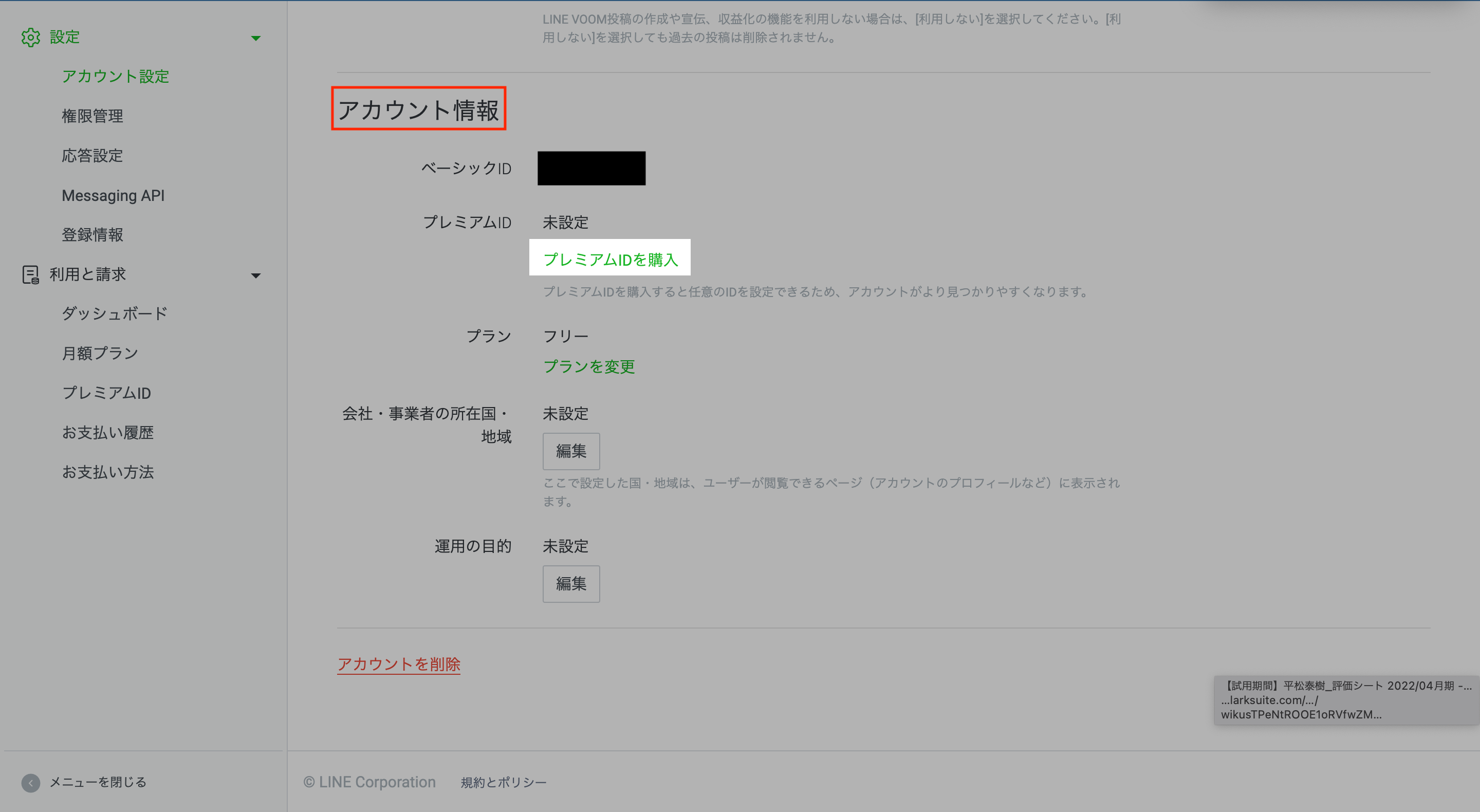 これでプレミアムIDの設定が出来るようになりました。次はLINE公式アカウントのプロフィール設定です。引き続きよろしくお願い致します!
