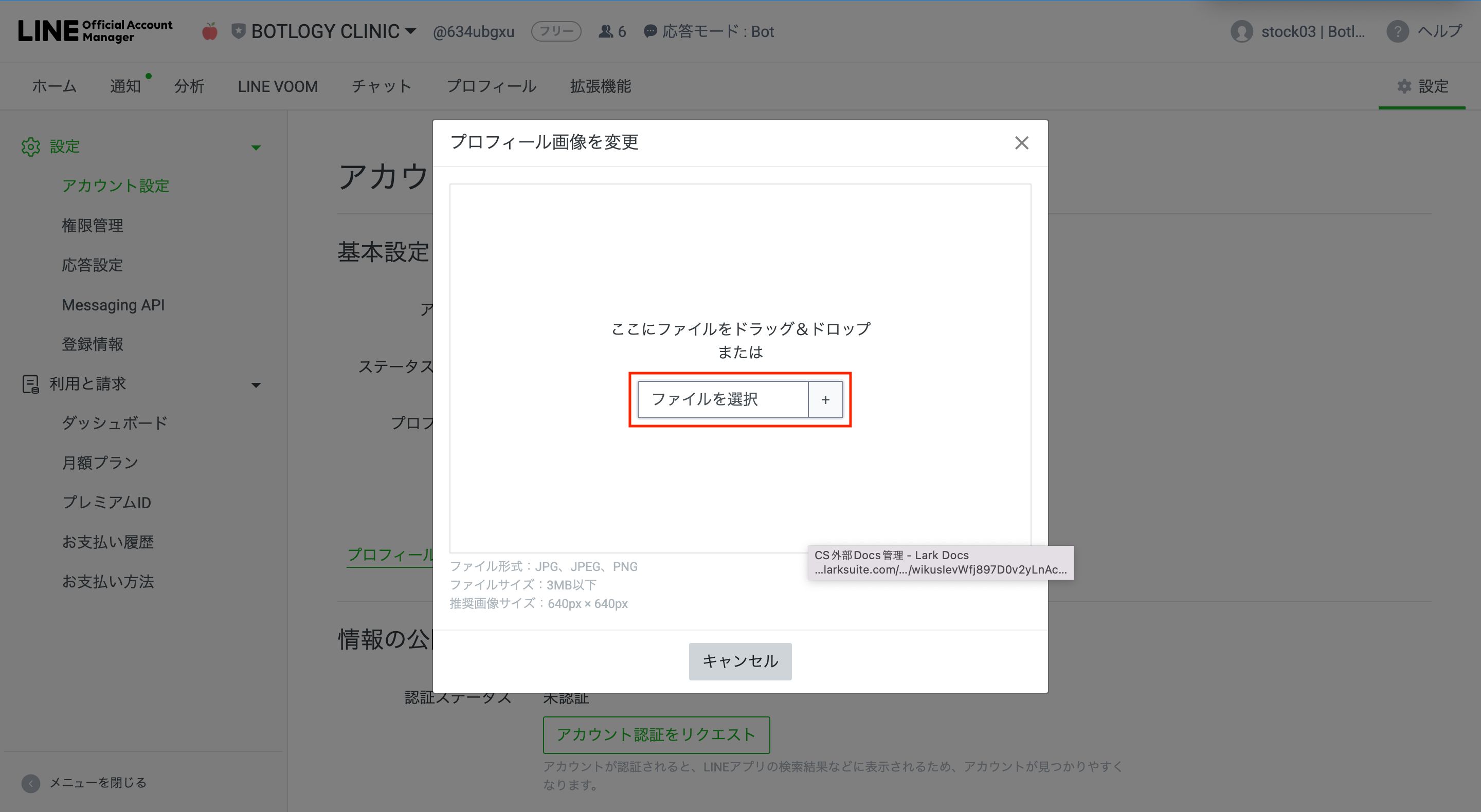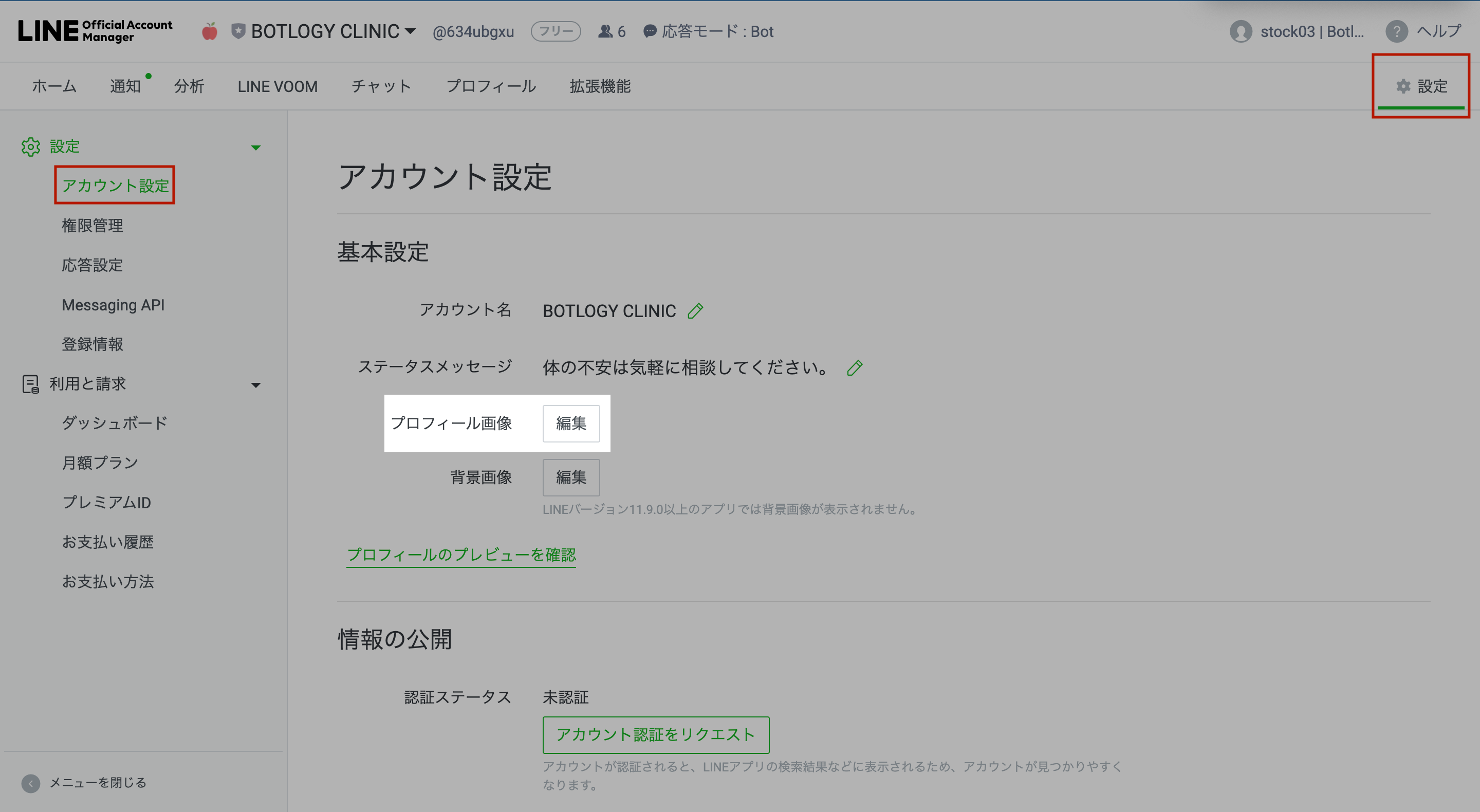 プロフィール画像とは「クリニック単位で持つLINE公式アカウント」のプロフィール画像で、アカウントの顔となるので、患者様からの印象面でとても重要です。