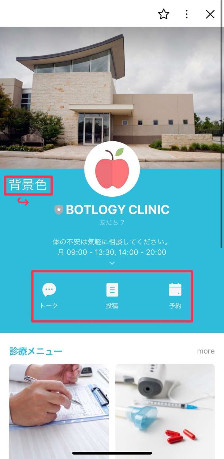 プロフィールを設定 > デザイン > 背景色の項目より希望の背景色を選択して完了。