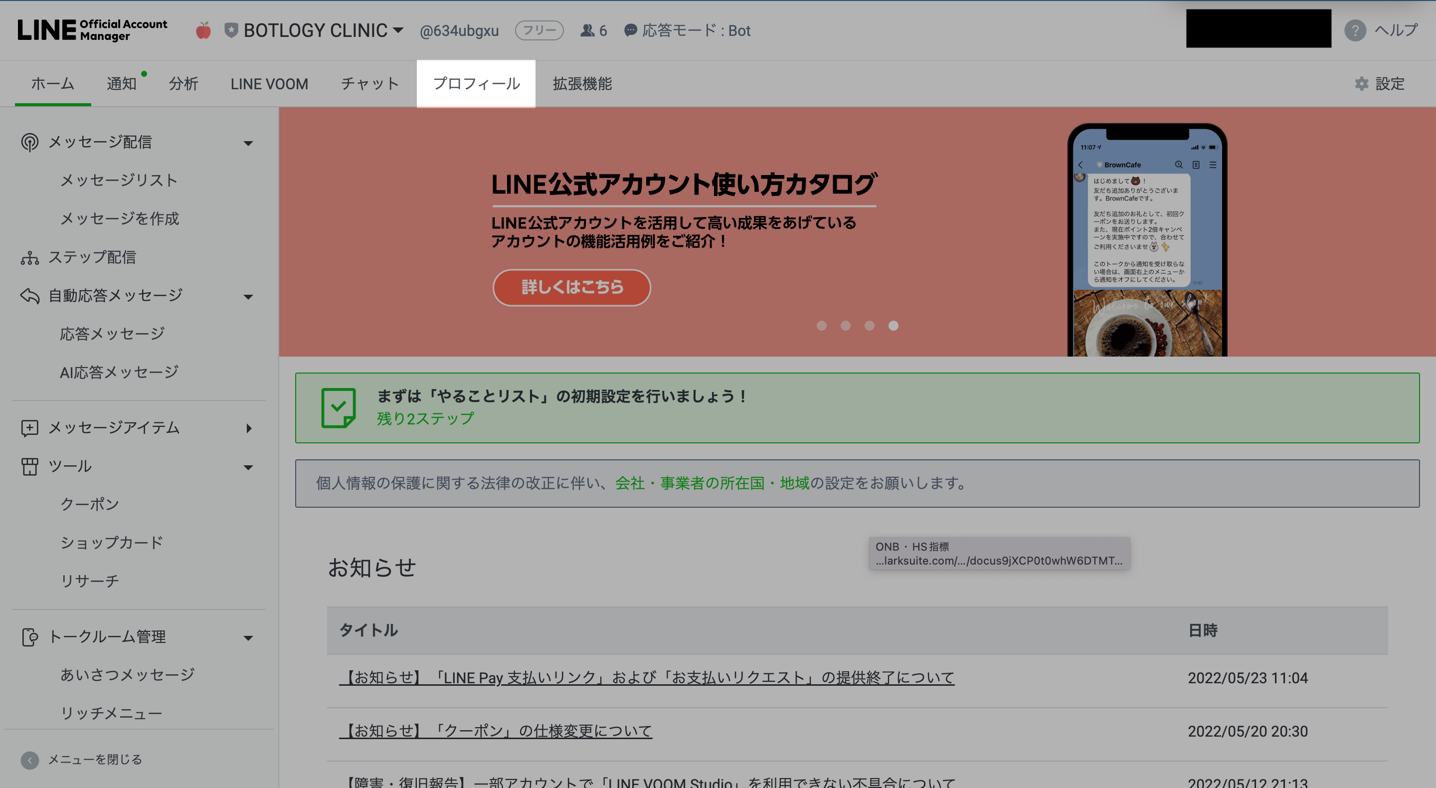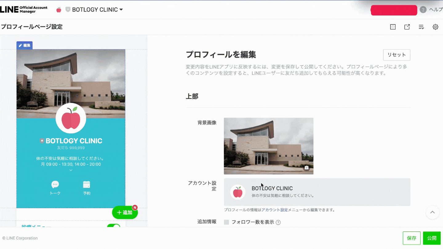 プロフィールの編集では、以下の3つを設定することが可能です。