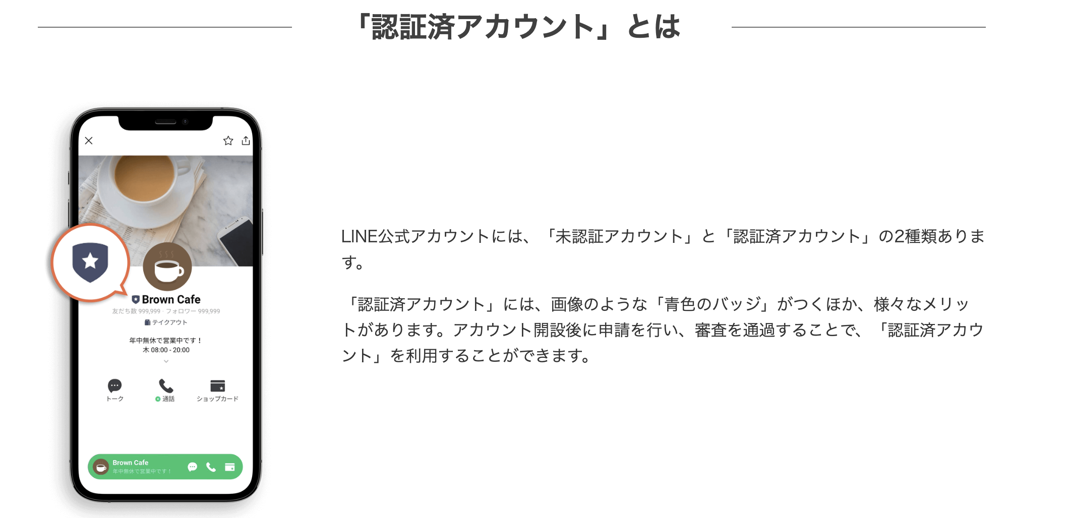 LINE公式アカウントは、LINE社の「認証」を取得することができます。