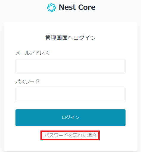 パスワードを忘れた場合は、上記の管理画面URLより、「パスワードを忘れた場合」をクリックしてください。パスワードの再設定が可能です。