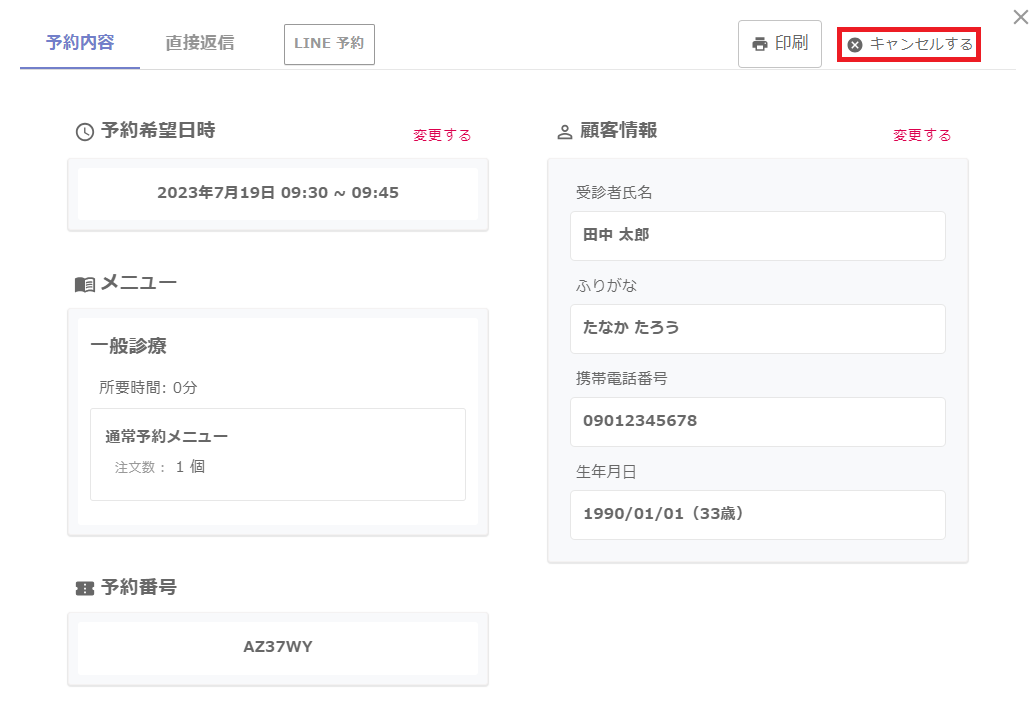 - 患者側のキャンセル方法