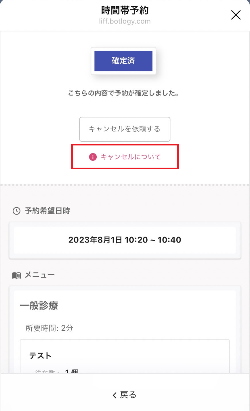 ・患者側(LINE)でのキャンセル方法