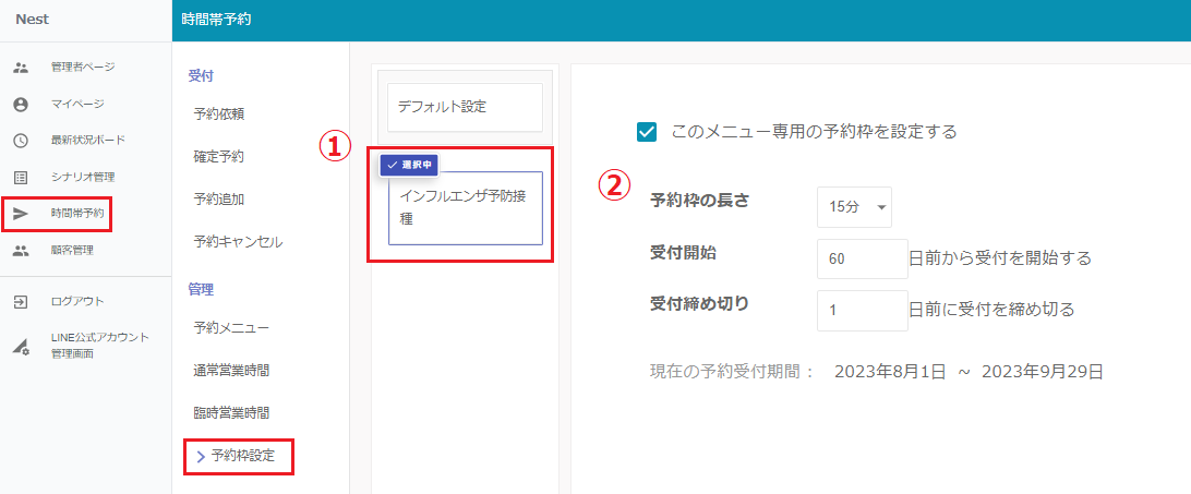 ■予約枠の長さ・予約受付日時の設定