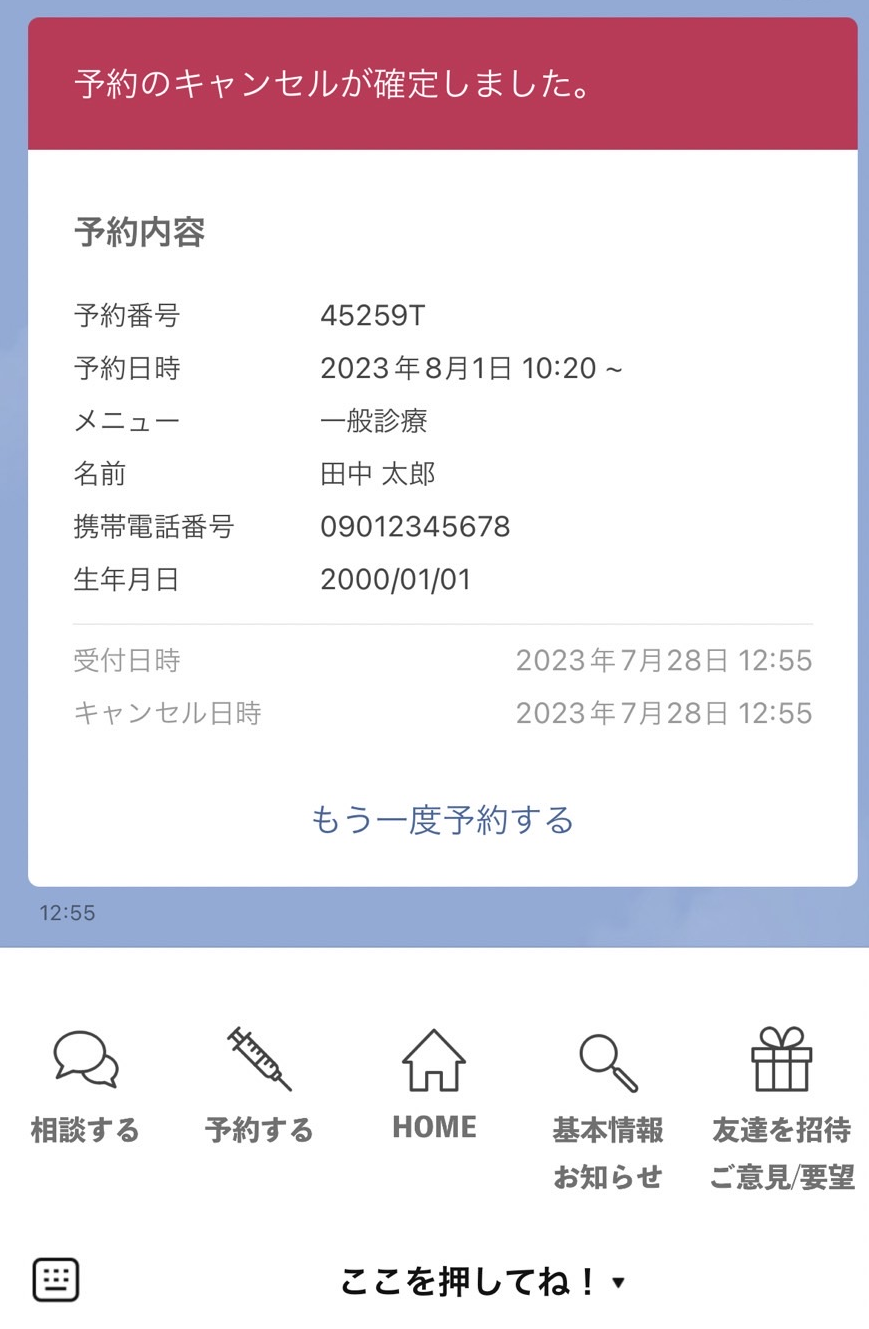 ・締め切り設定⇒1日前の夕方などに設定されるクリニック様が多いです。締め切り時間以降は、お電話でのキャンセル連絡となります。