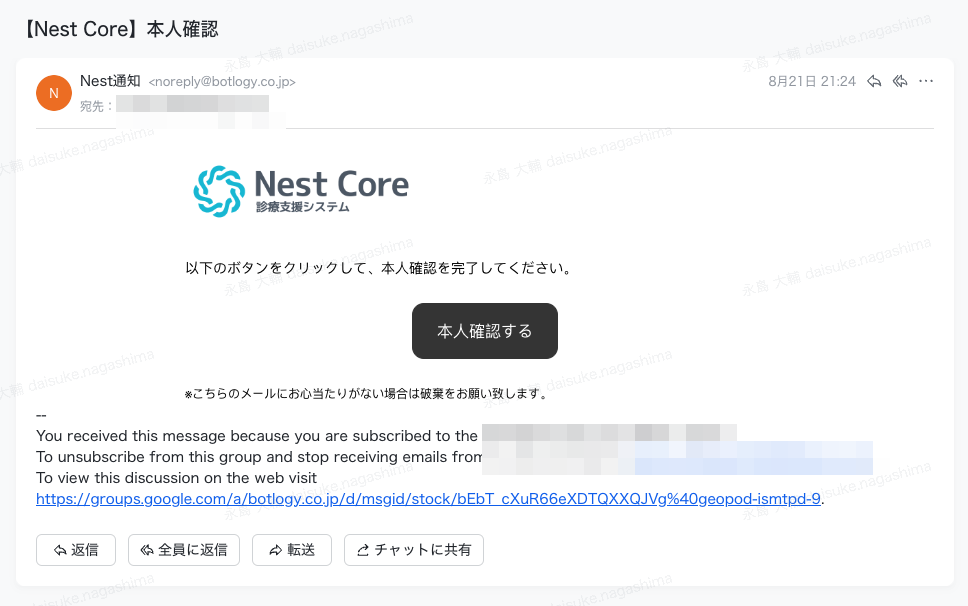 入力したメールアドレスに本人確認メールが届き「本人確認する」ボタンをクリックする