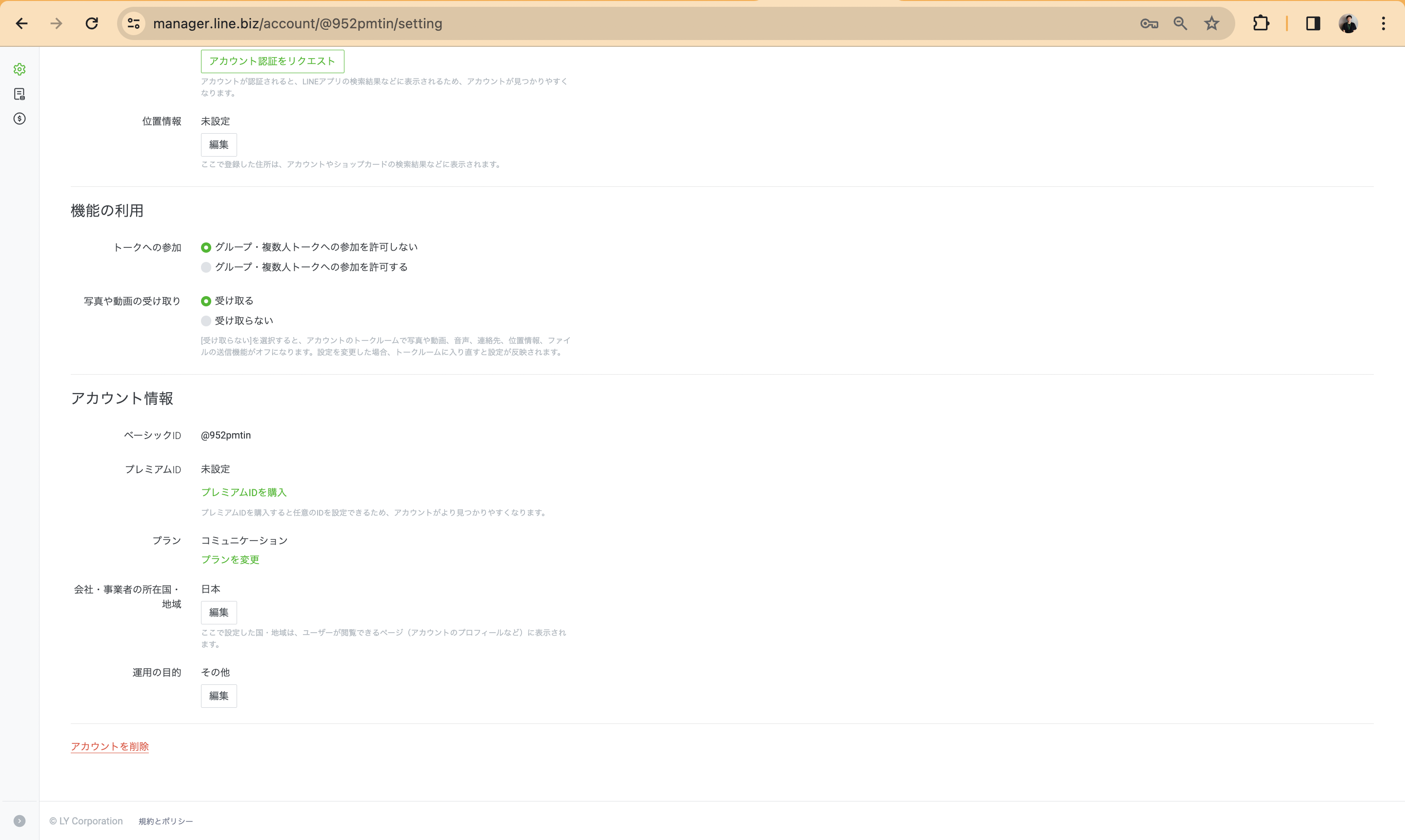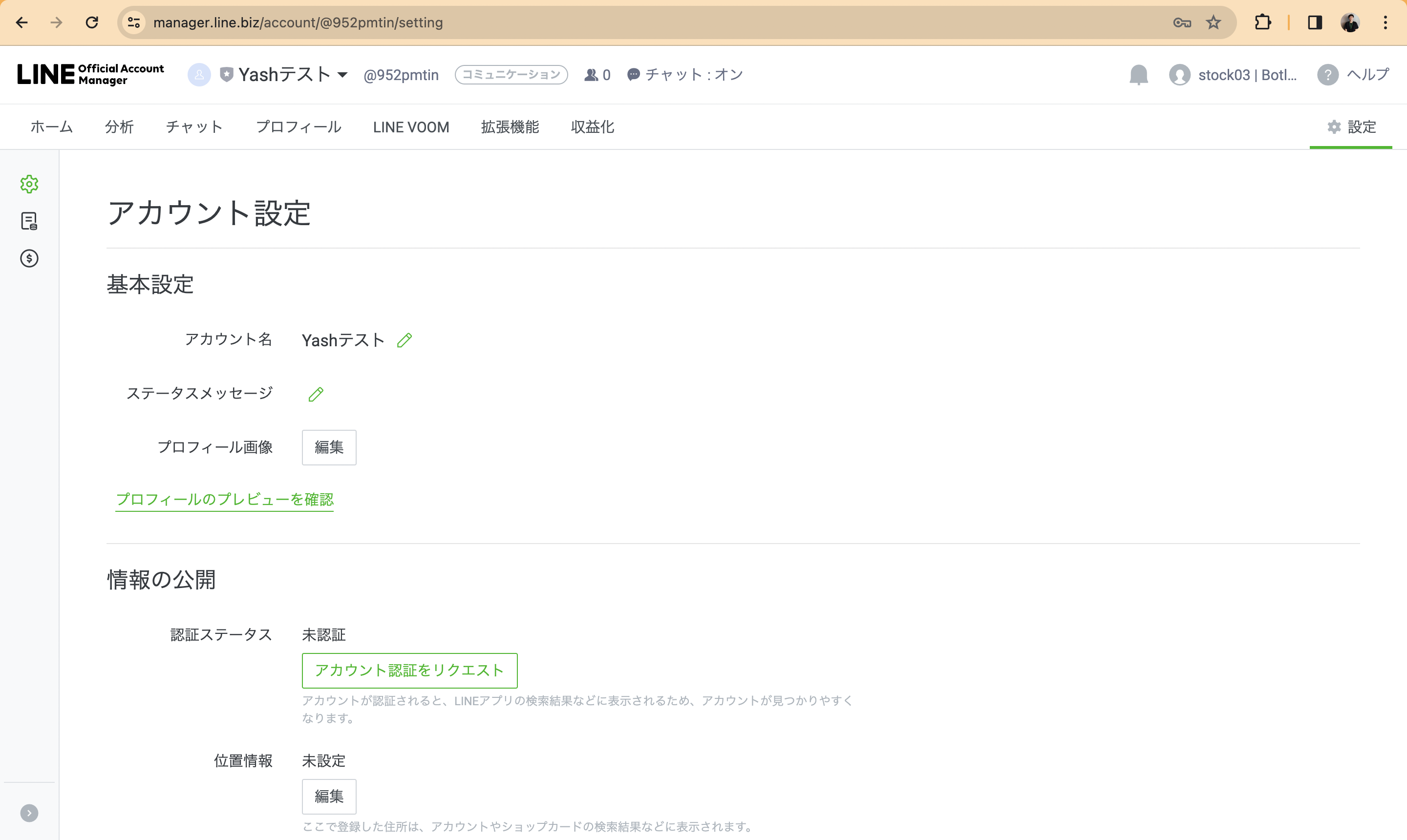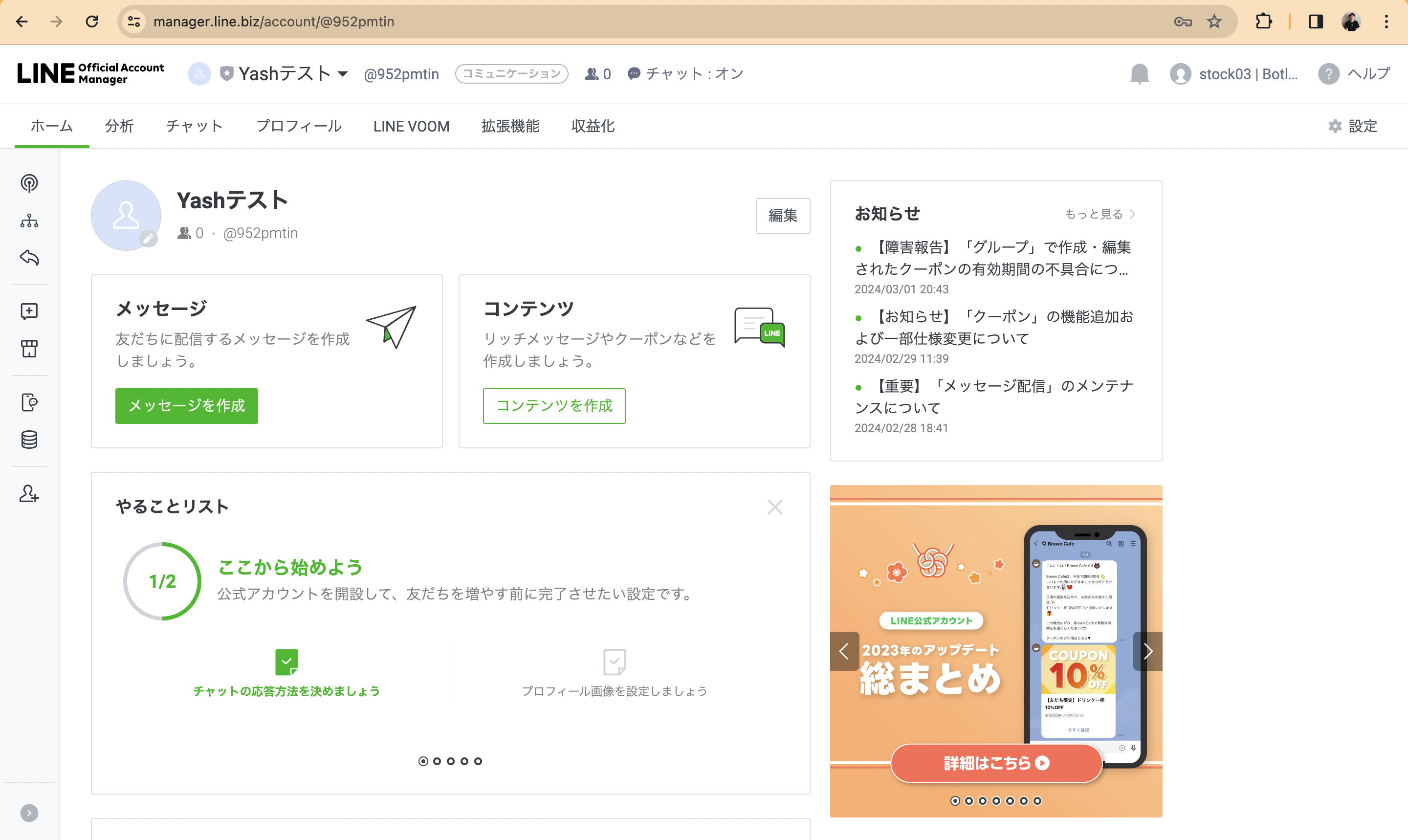 1. LINE official Account Managerにログイン後、ホーム画面に遷移