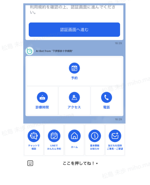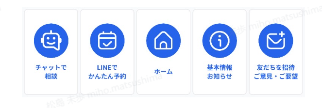 カスタマイズ可能なリッチメニューデザインや、チャットボット機能、一般診療や順番予約予約など